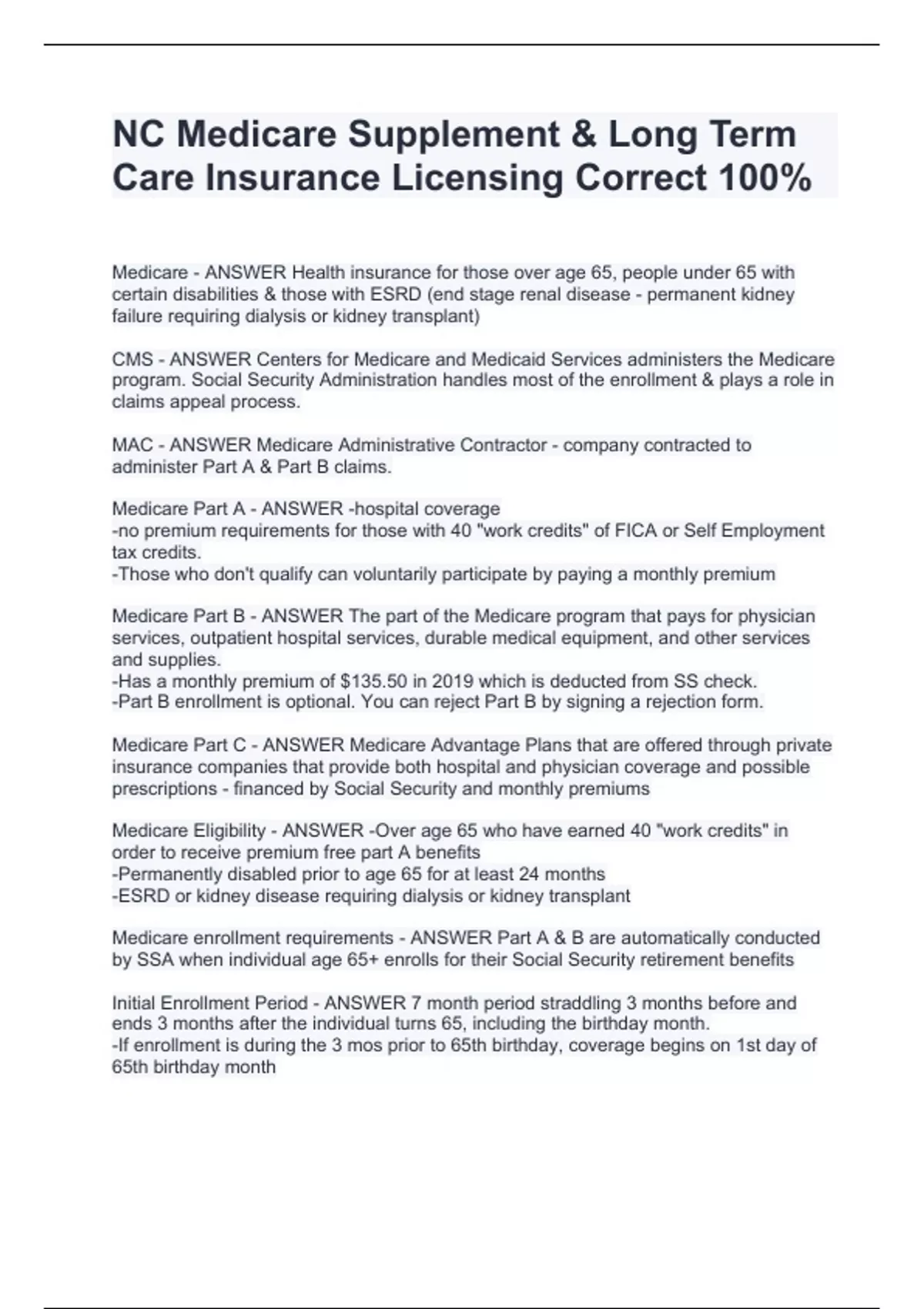NC Medicare Supplement & Long Term Care Insurance Licensing Correct 100%
