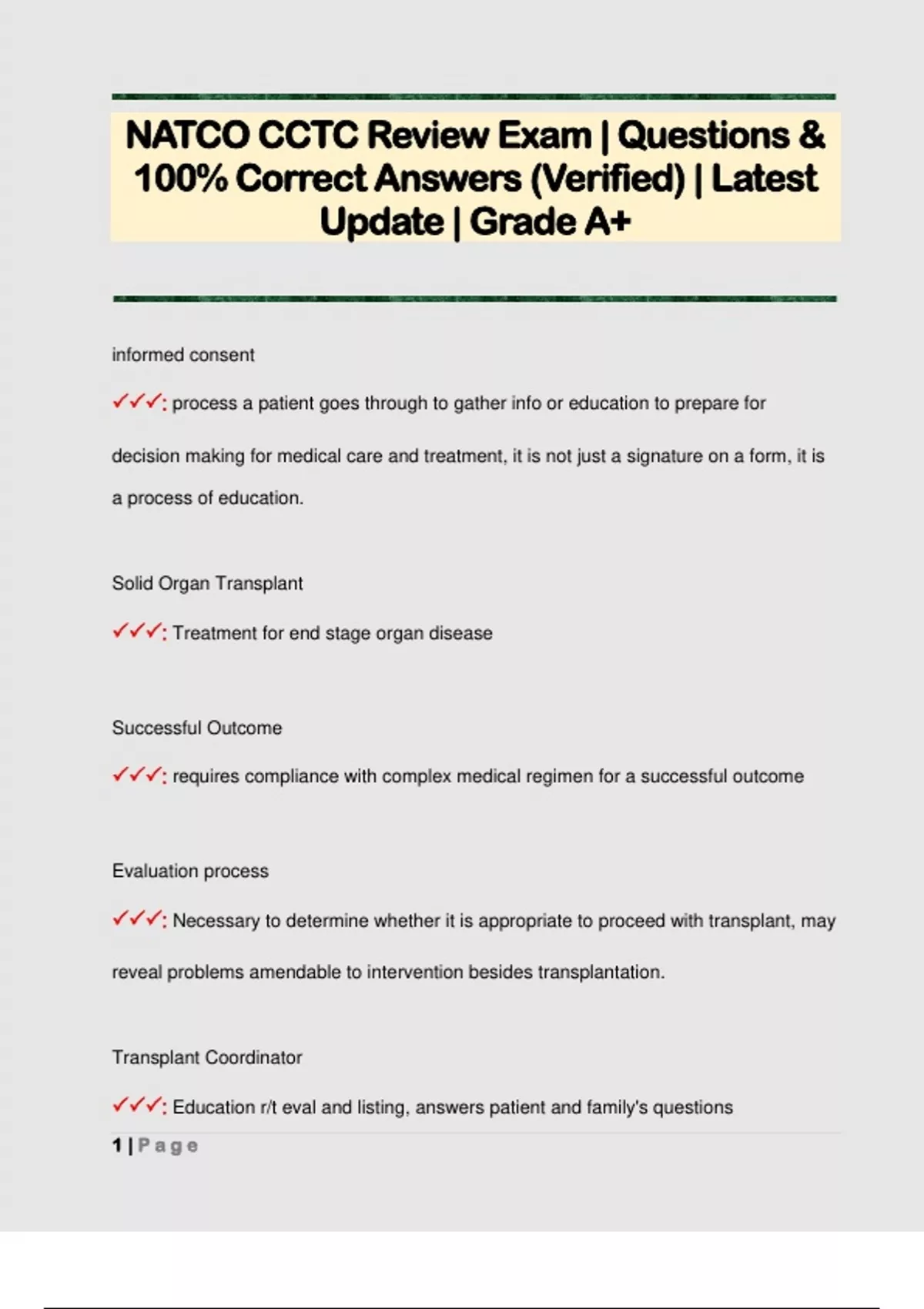 NATCO CCTC Review Exam | Questions & 100% Correct Answers (Verified) | Latest Update | Grade A+