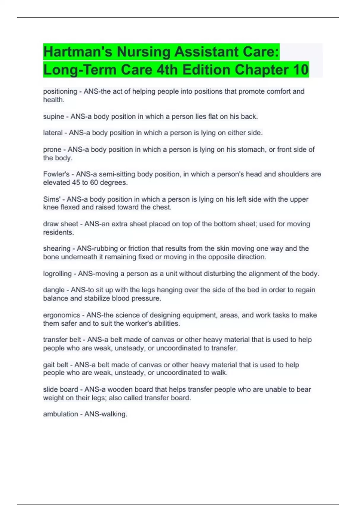 Hartman's Nursing Assistant Care Long-Term Care 4th Edition Chapter