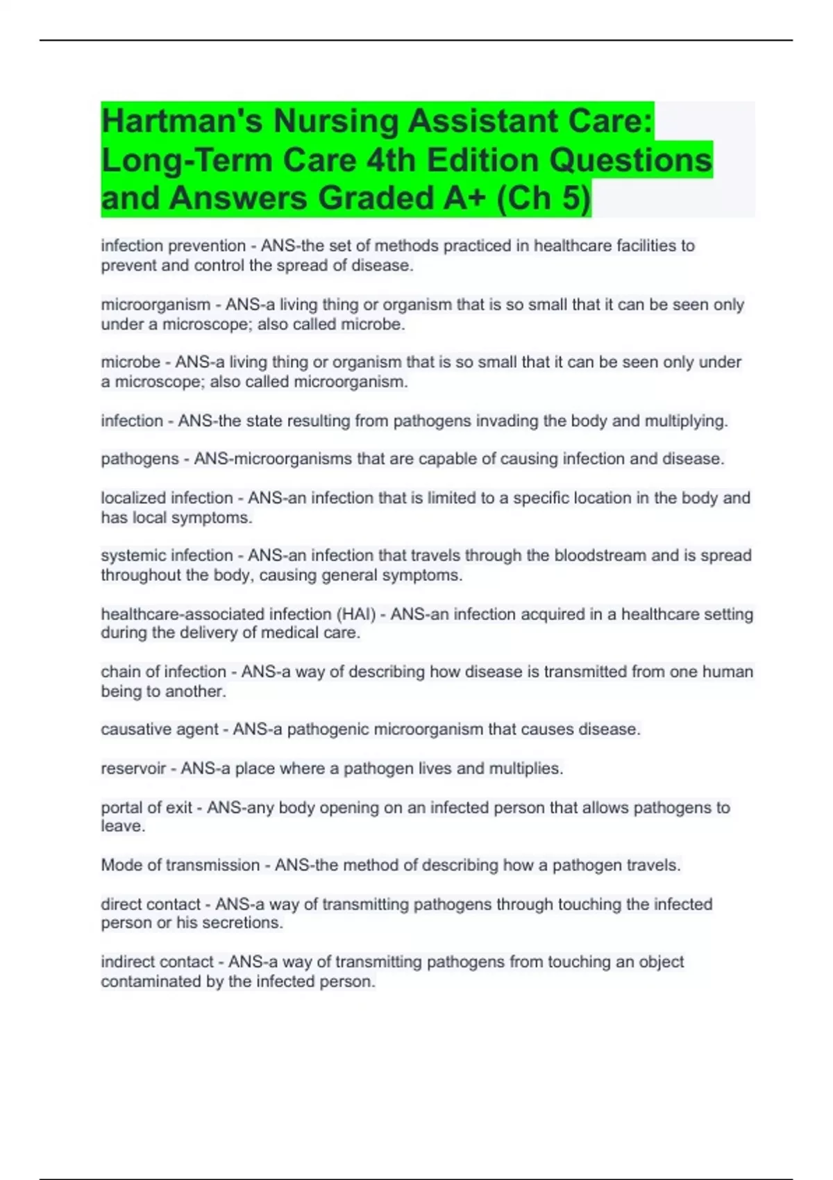 Hartman's Nursing Assistant Long-Term Care 4th Edition Questions and Answers Graded A+