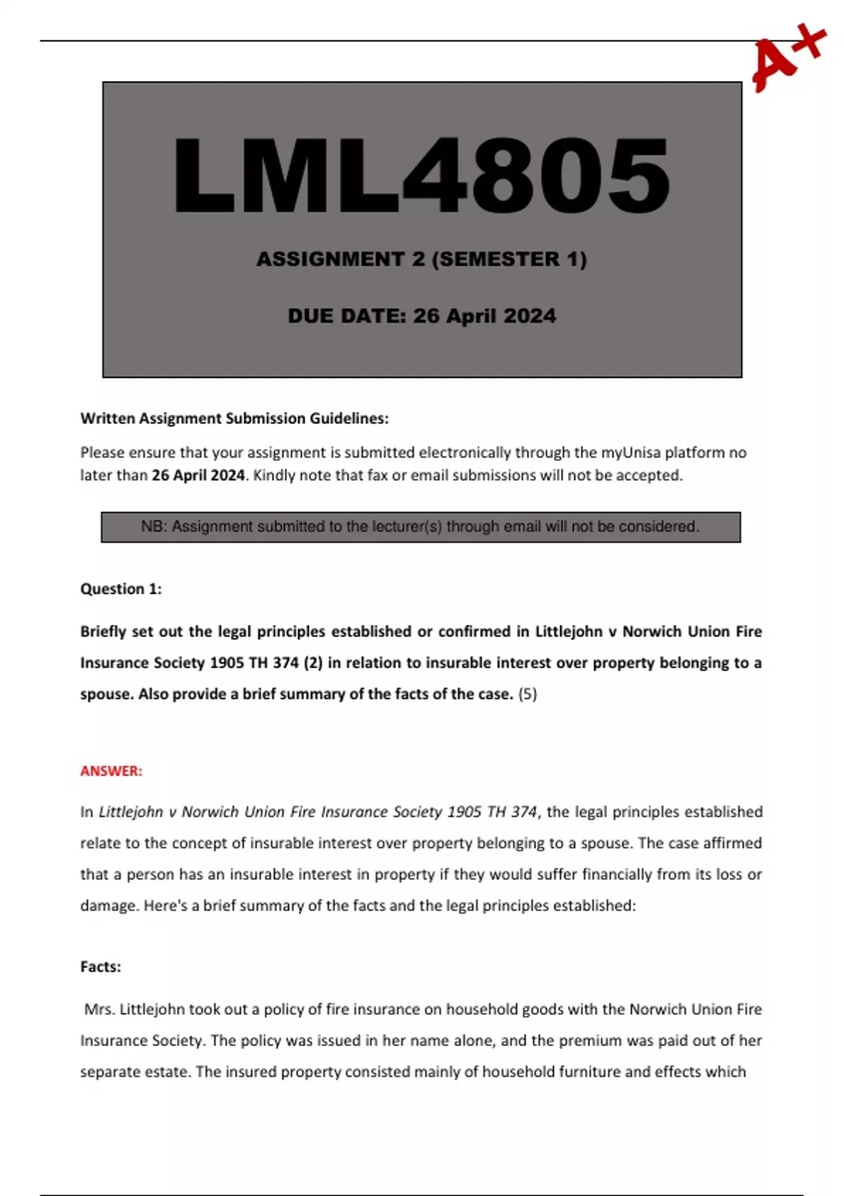 Please ensure that your assignment is submitted electronically through the myUnisa platform no