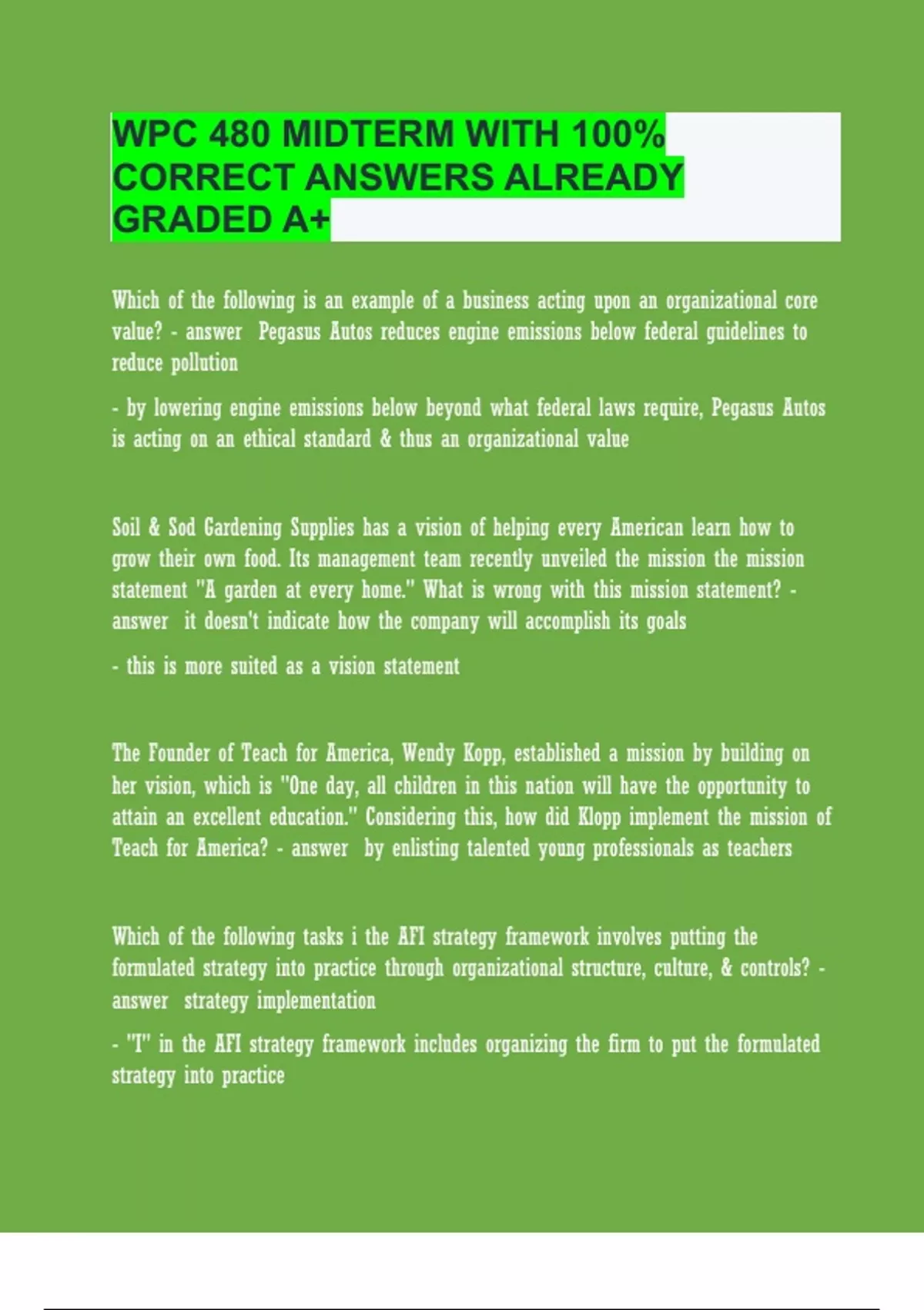 WPC 480 MIDTERM WITH 100% CORRECT ANSWERS ALREADY GRADED A+