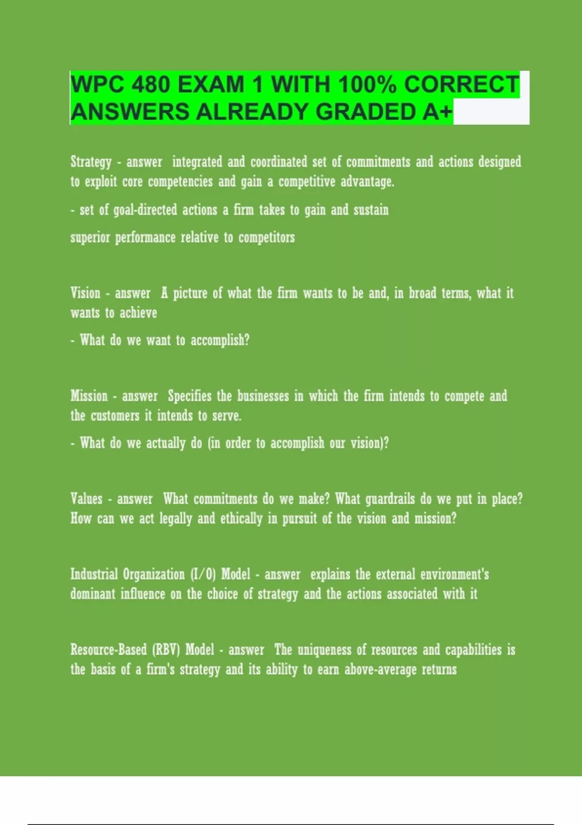 WPC 480 EXAM 1 WITH 100% CORRECT ANSWERS ALREADY GRADED A+.