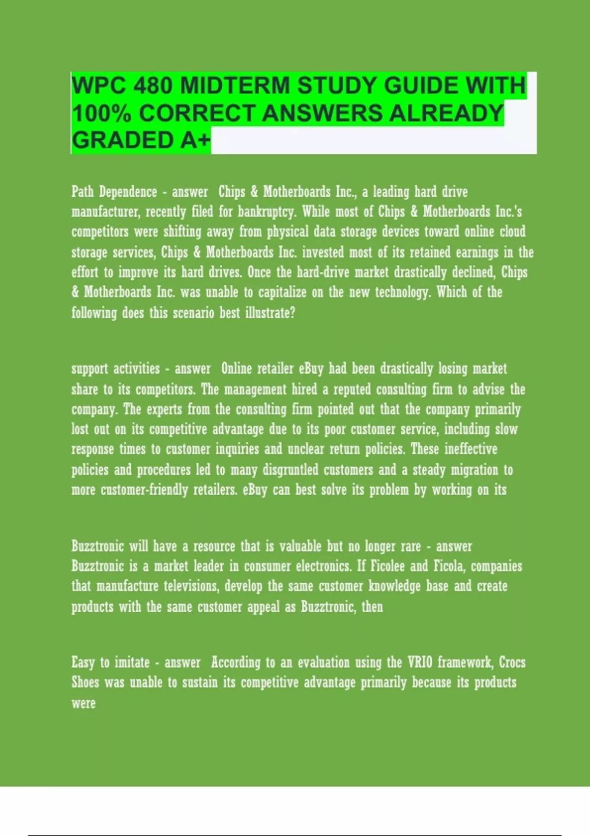 WPC 480 MIDTERM STUDY GUIDE WITH 100% CORRECT ANSWERS ALREADY GRADED A+