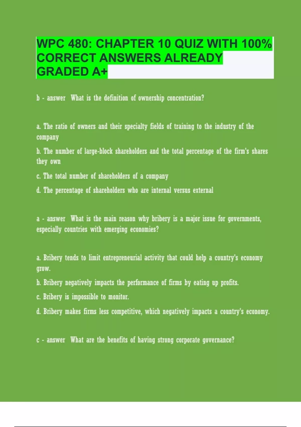 WPC 480 CHAPTER 10 QUIZ WITH 100% CORRECT ANSWERS ALREADY GRADED A+