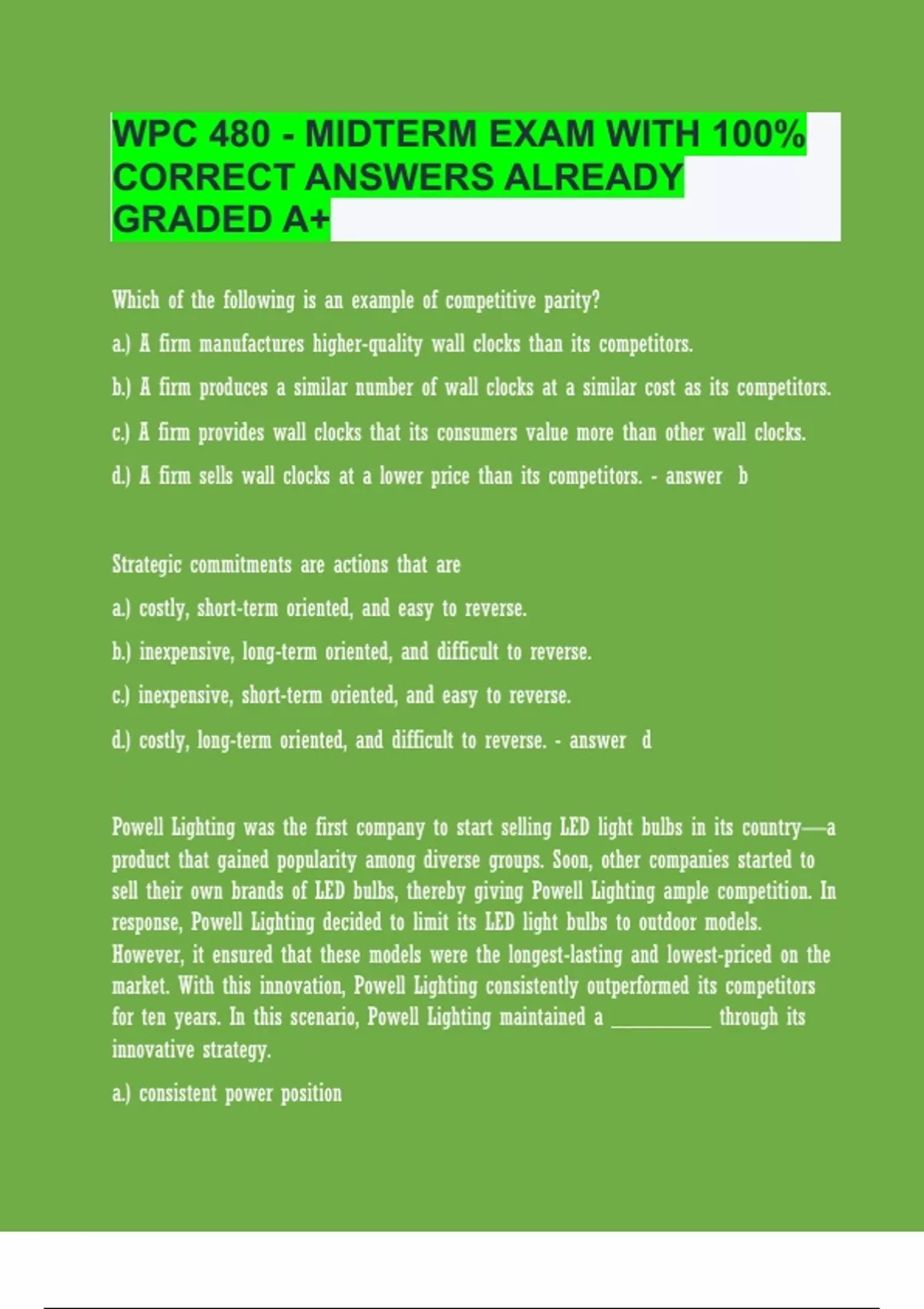 WPC 480 - MIDTERM EXAM WITH 100% CORRECT ANSWERS ALREADY GRADED A+.