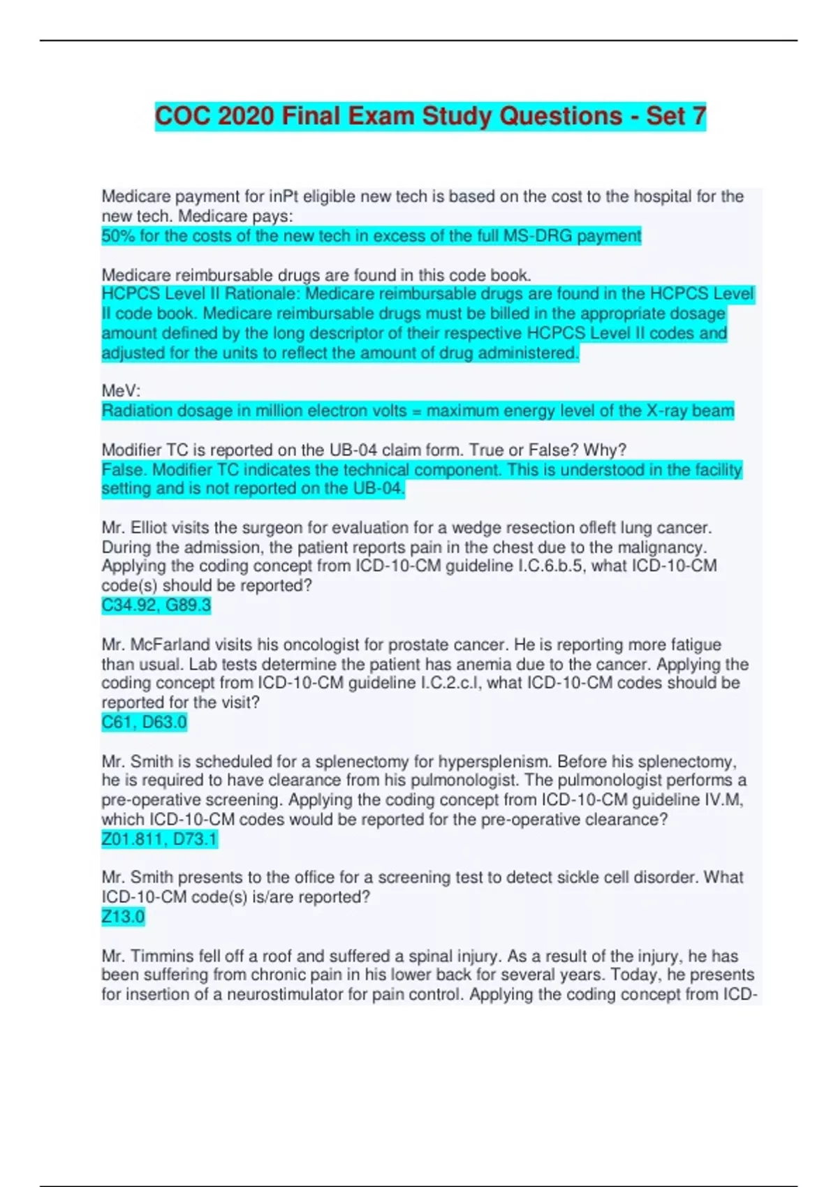 COC 2020 Final Exam Study Questions - Set 7 (Complete Solutions, Answered)