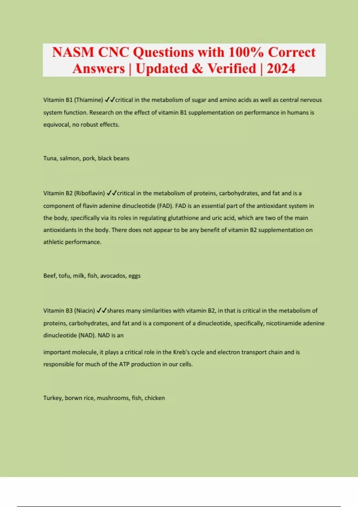 NASM CNC Questions with 100% Correct Answers | Updated & Verified | 2024