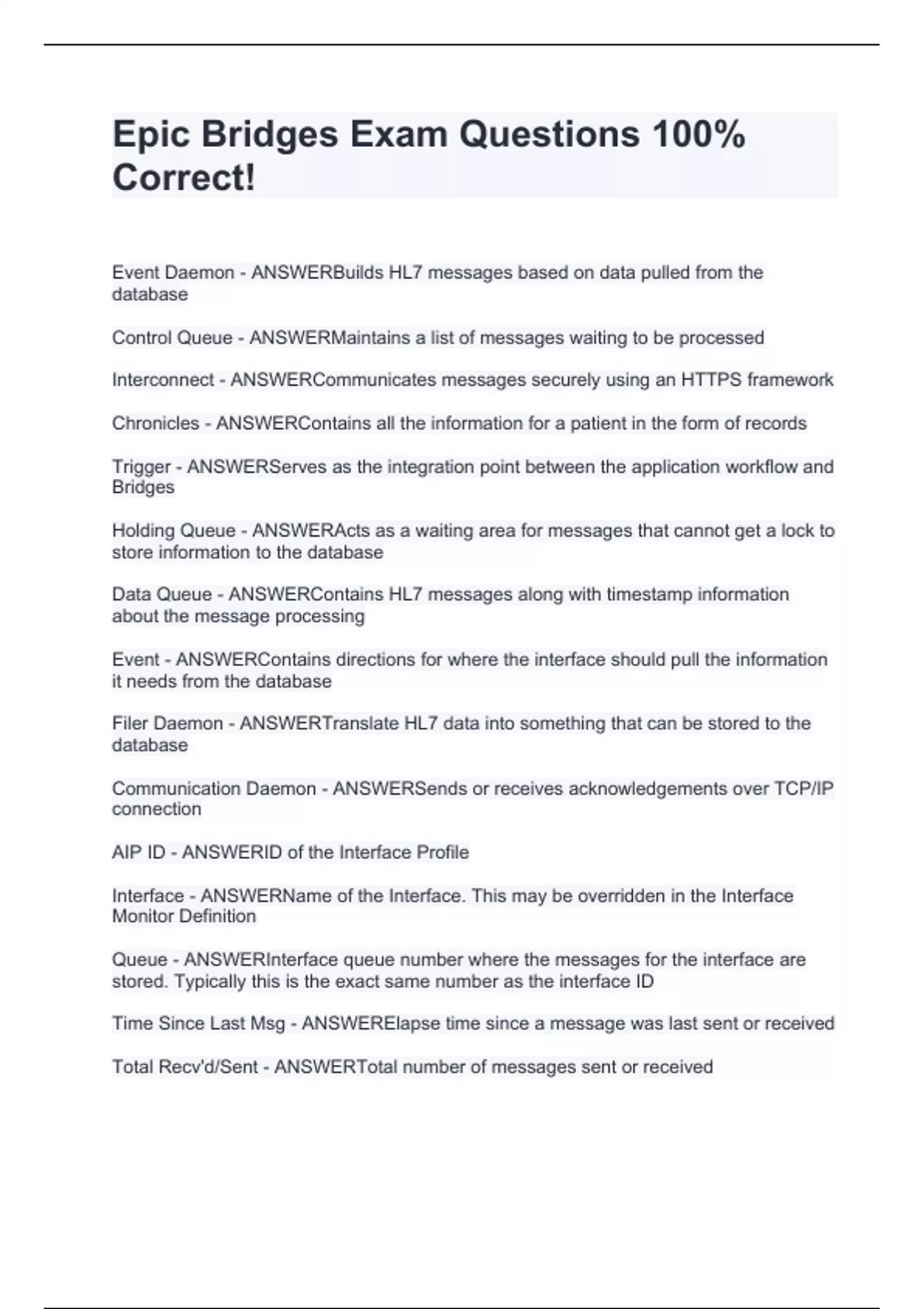 Epic Bridges Exam Questions 100% Correct!