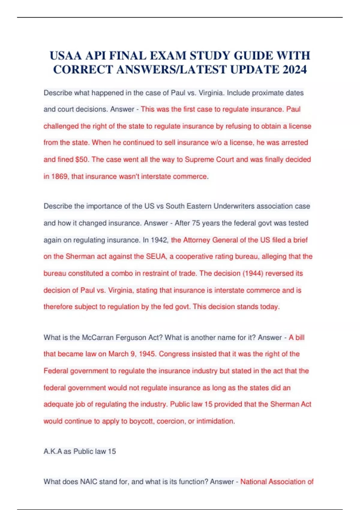 USAA API FINAL EXAM STUDY GUIDE WITH CORRECT ANSWERS/LATEST UPDATE 2024