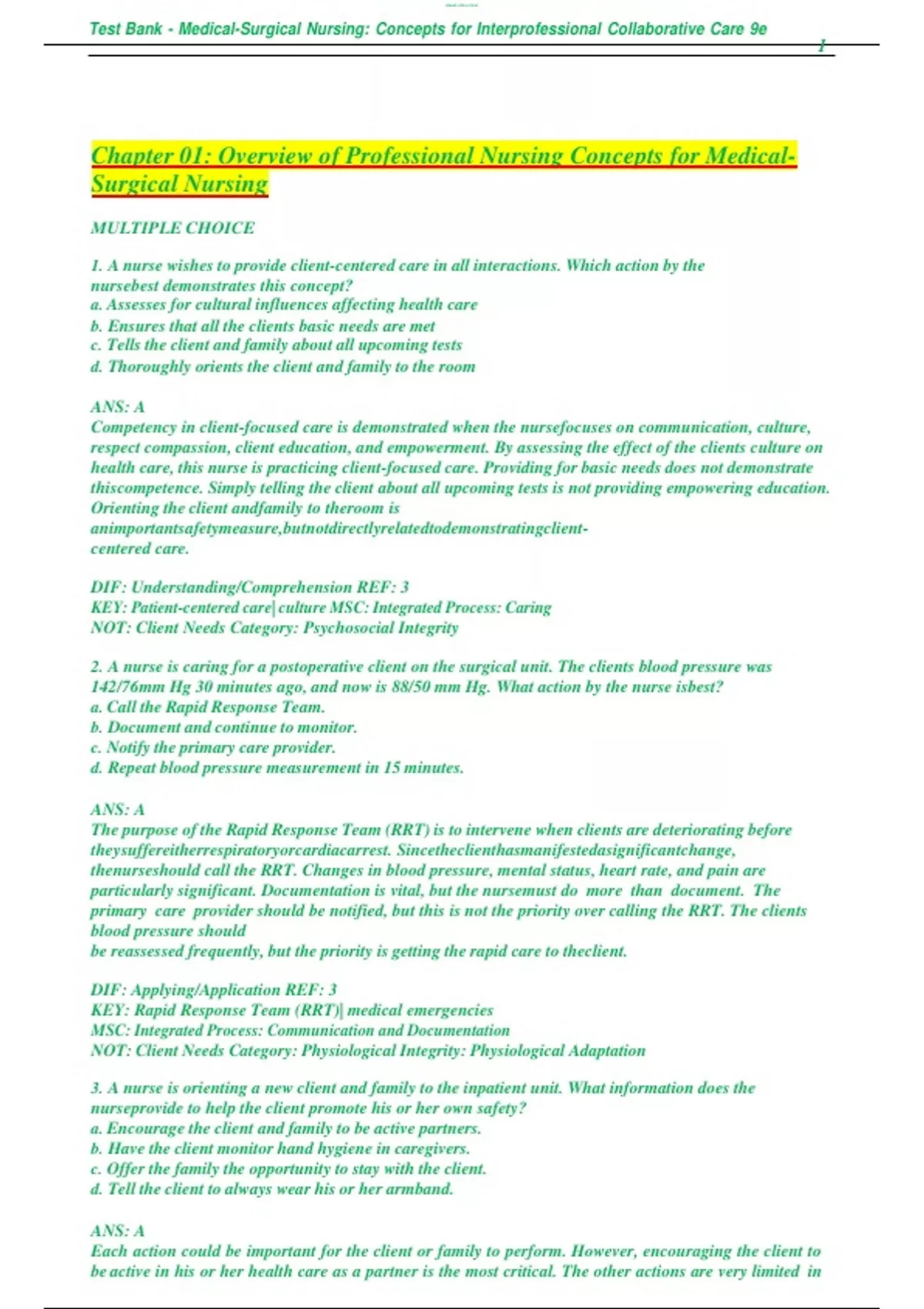 Test Bank - Medical-Surgical Nursing: Concepts for Interprofessional Collaborative Care 9e