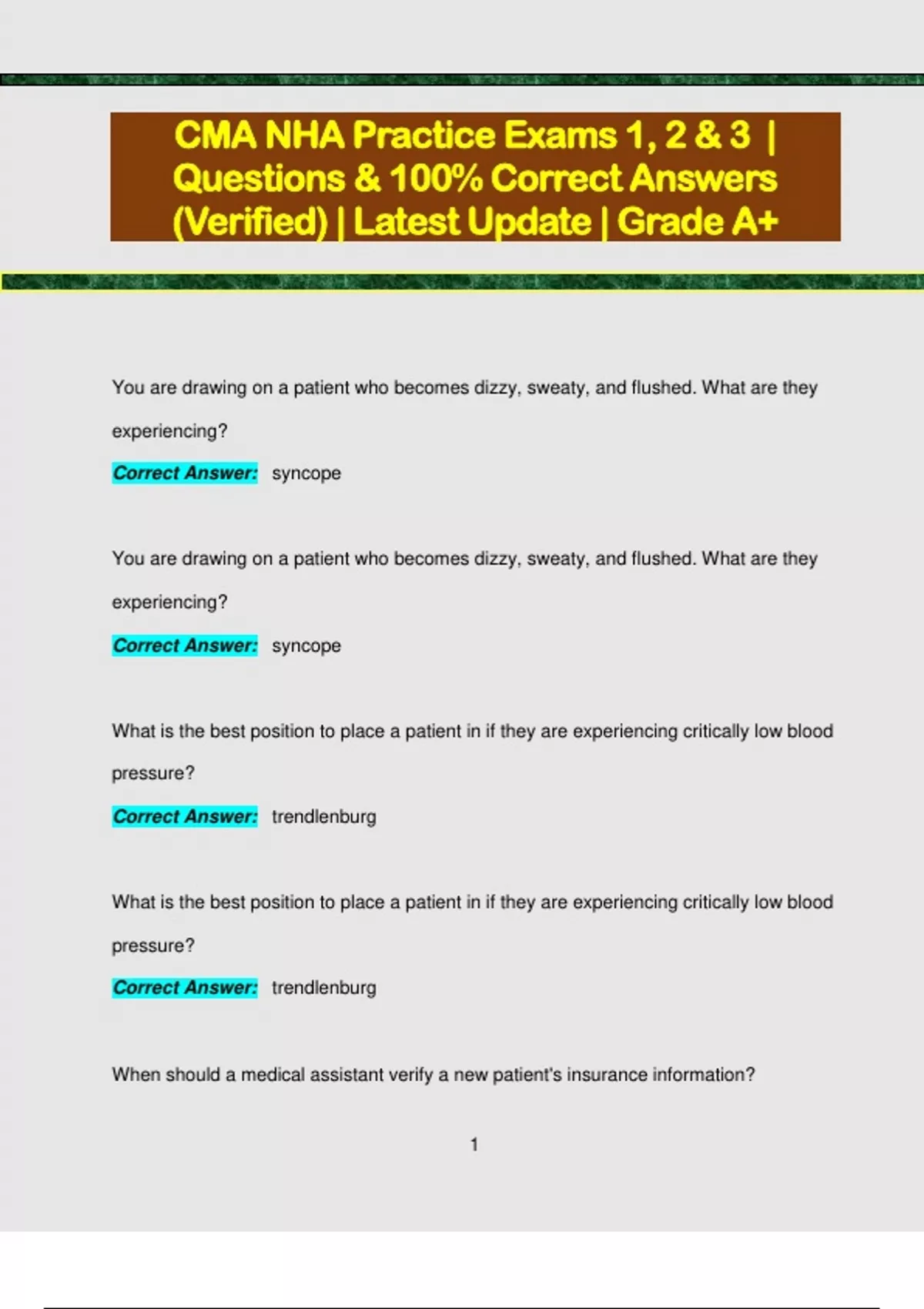 CMA NHA Practice Exams 1, 2 & 3 | Questions & 100% Correct Answers (Verified) | Latest Update | Grade A+