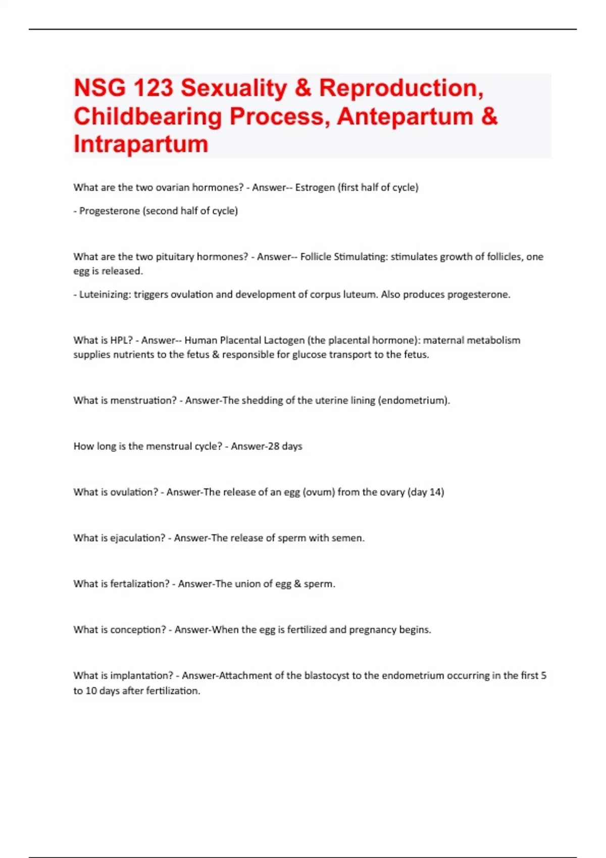 2024 NSG 123 Sexuality & Reproduction, Childbearing Process, Antepartum & Intrapartum Questions & Answers Solved 100% Correct!!