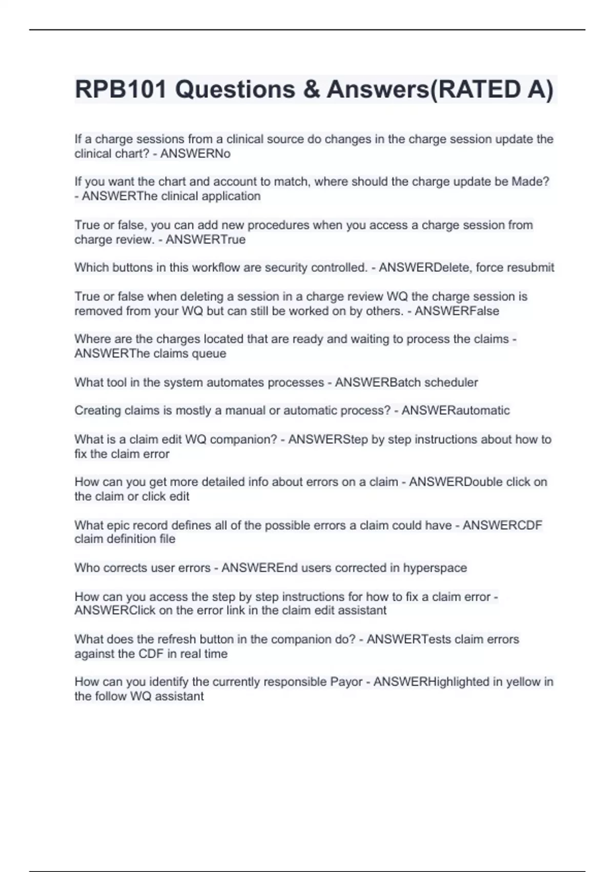 RPB101 Questions & Answers(RATED A)