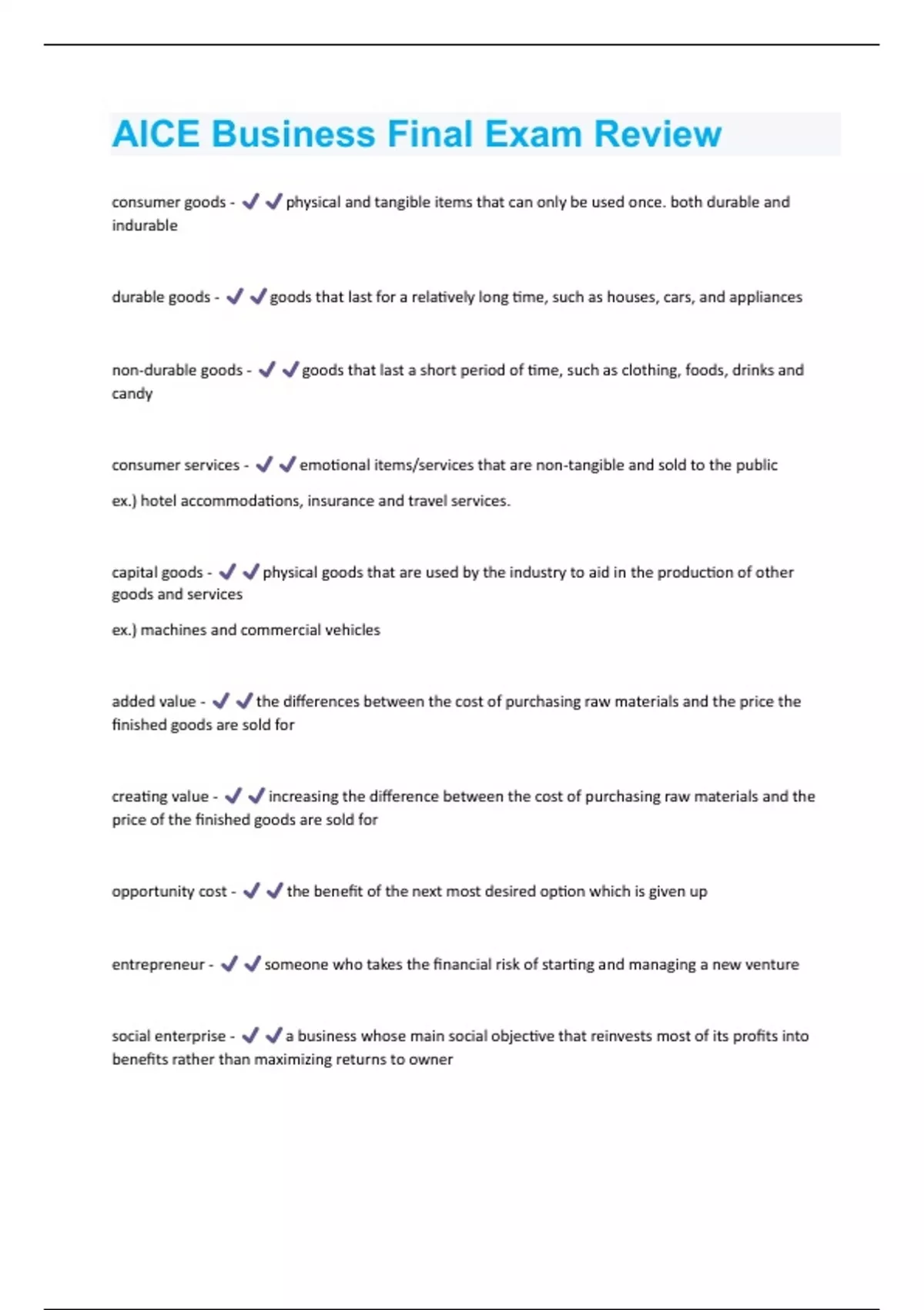 AICE Business Final Exam Review Questions With Correct Solutions, Already Passed!!