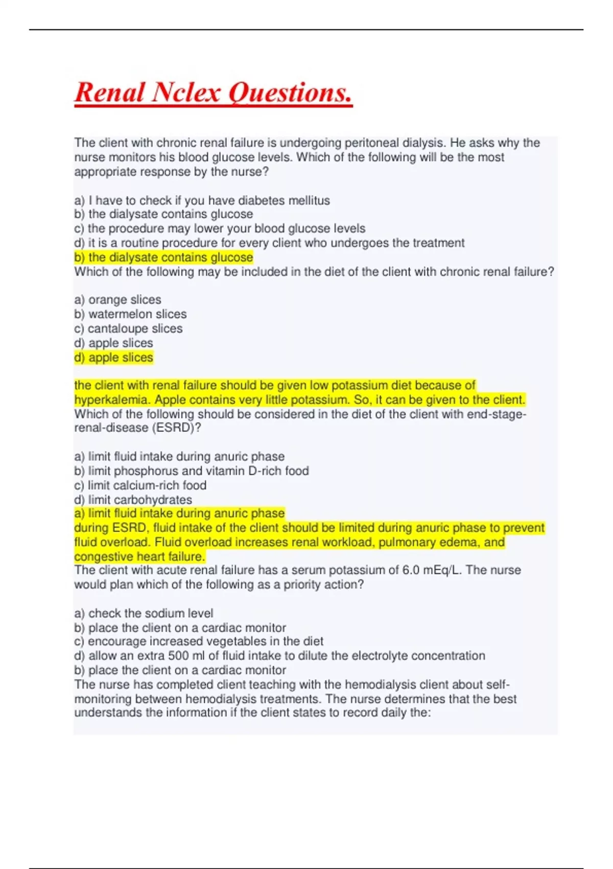 Renal NCLEX. Examination Library Queries and Solutions (Newest Compilation)
