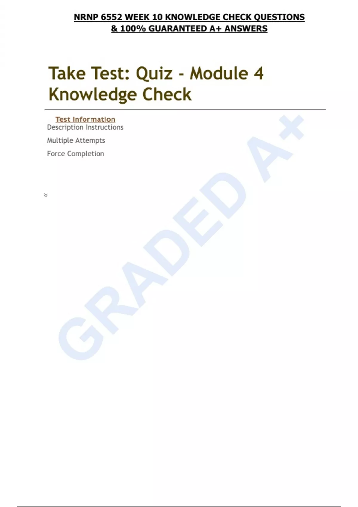 NRNP 6552 WEEK 10 KNOWLEDGE CHECK QUESTIONS & 100% GUARANTEED A+ ANSWERS