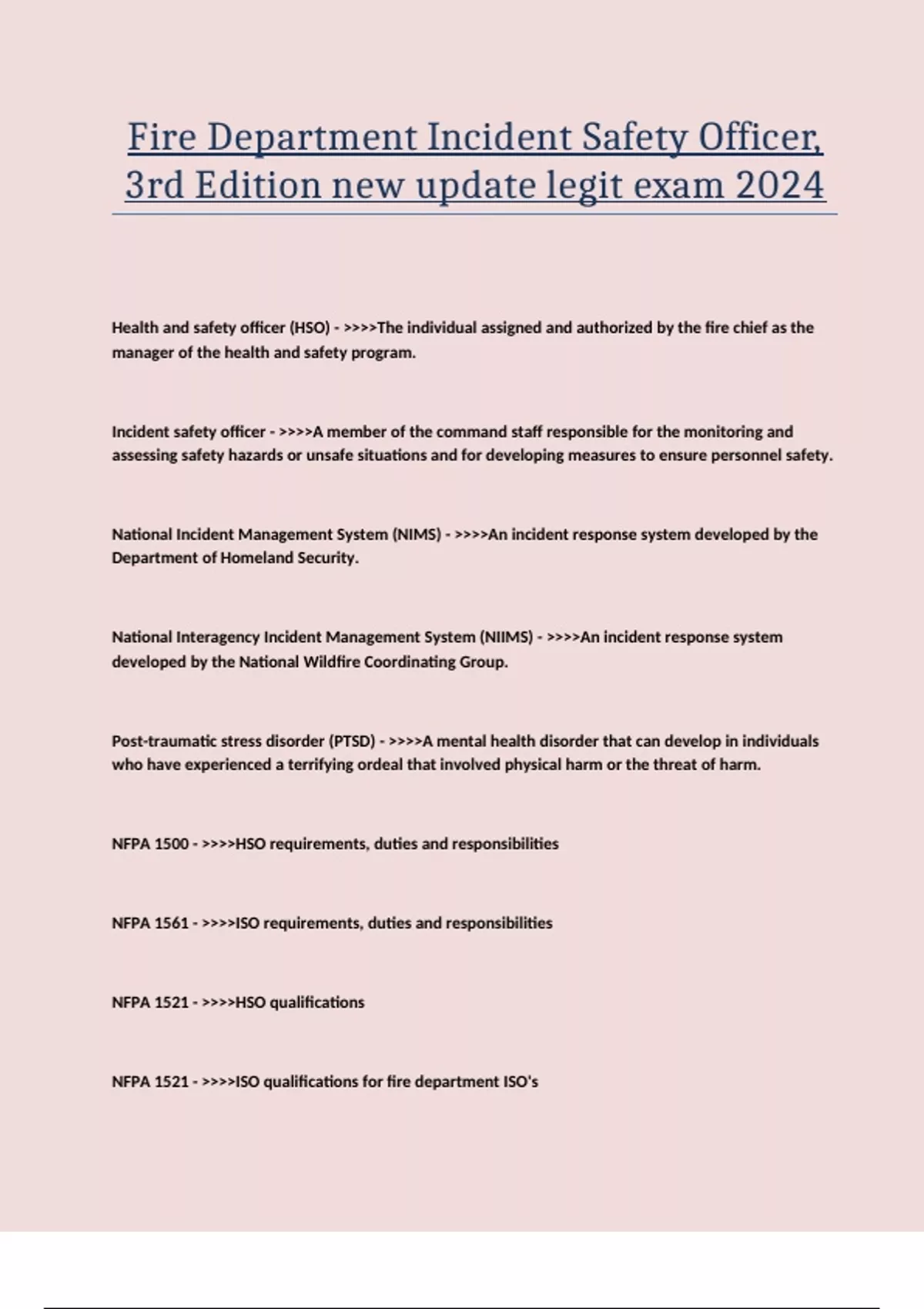 Fire Department Incident Safety Officer, 3rd Edition new update legit exam 2024