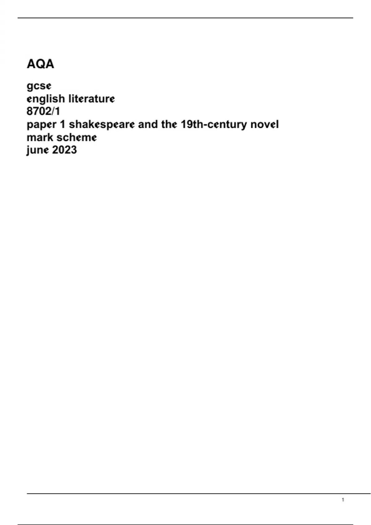 AQA GCSE English literature 8702/1 paper 1 Shakespeare and the 19th -century novel mark scheme, June 2023