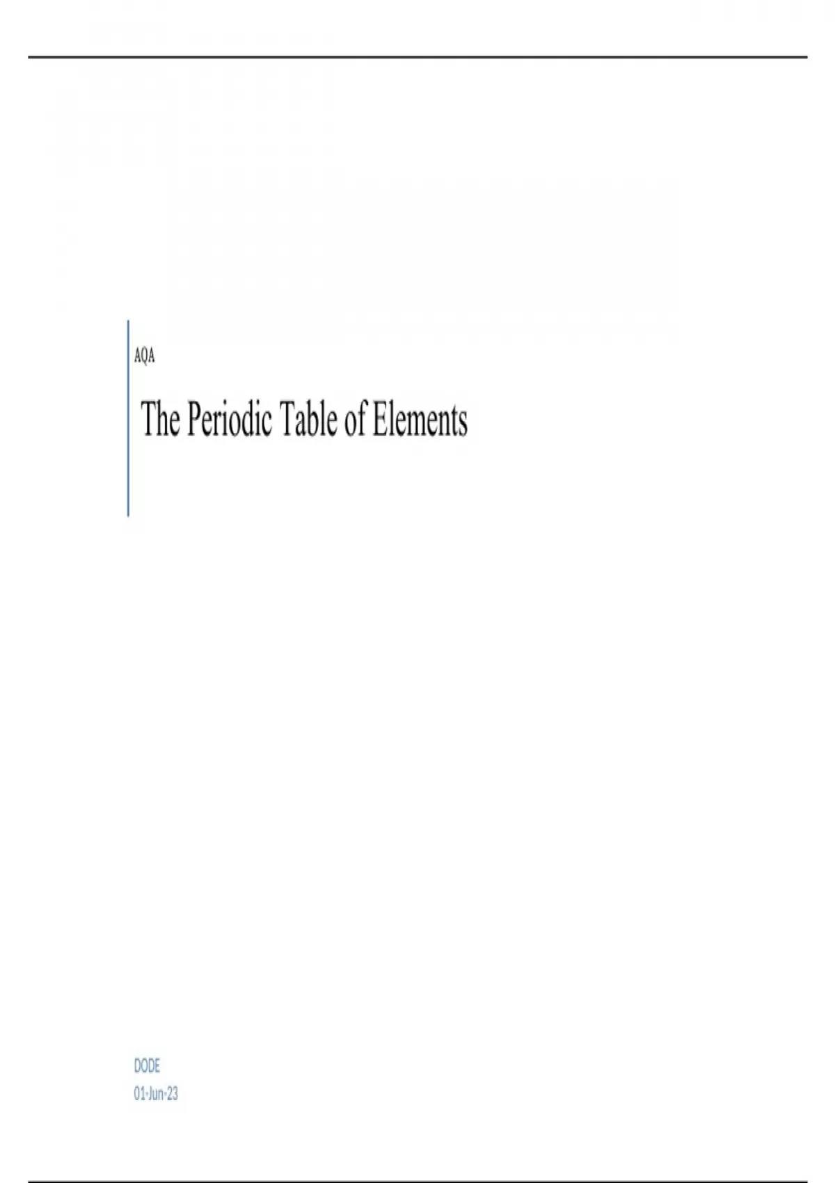 AQA GCSE The Periodic Table of Elements INSERT FOR JUNE 2023