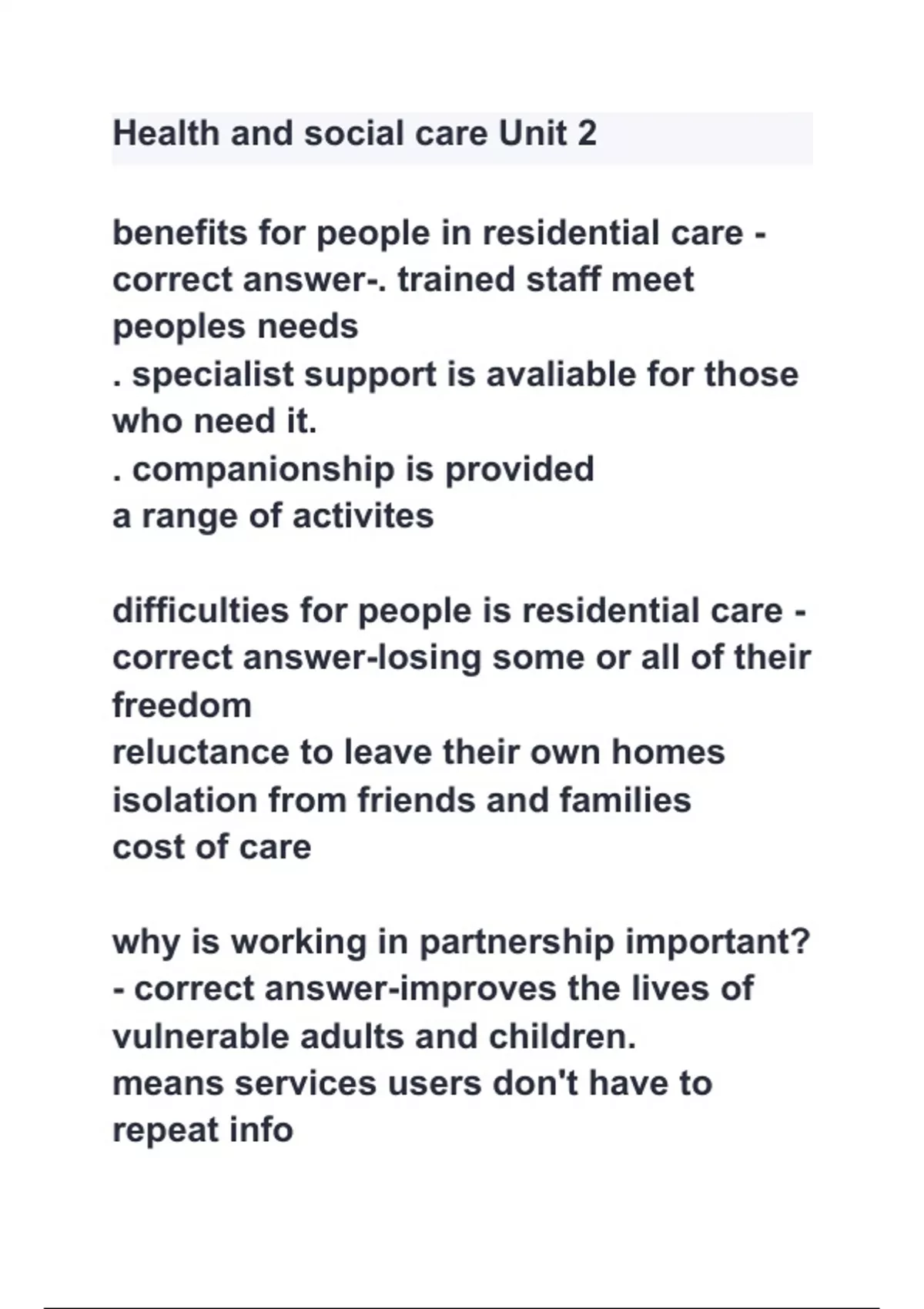 Health and social care Unit 2 with complete solution