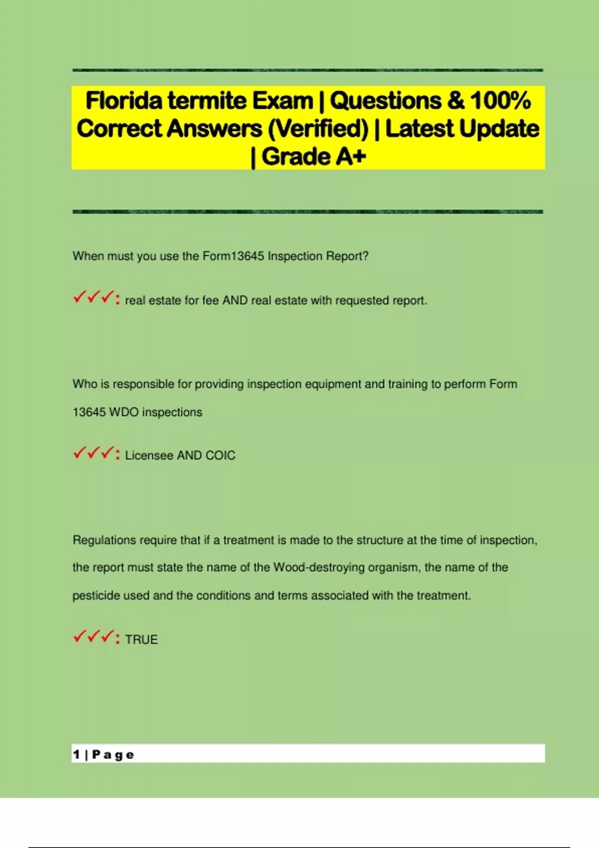 Florida termite Exam | Questions & 100% Correct Answers (Verified) | Latest Update | Grade A+