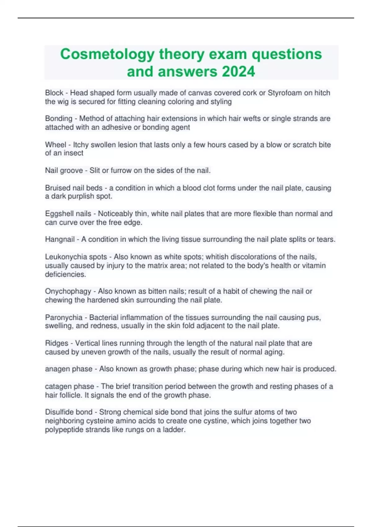 Cosmetology theory exam questions and answers 2024