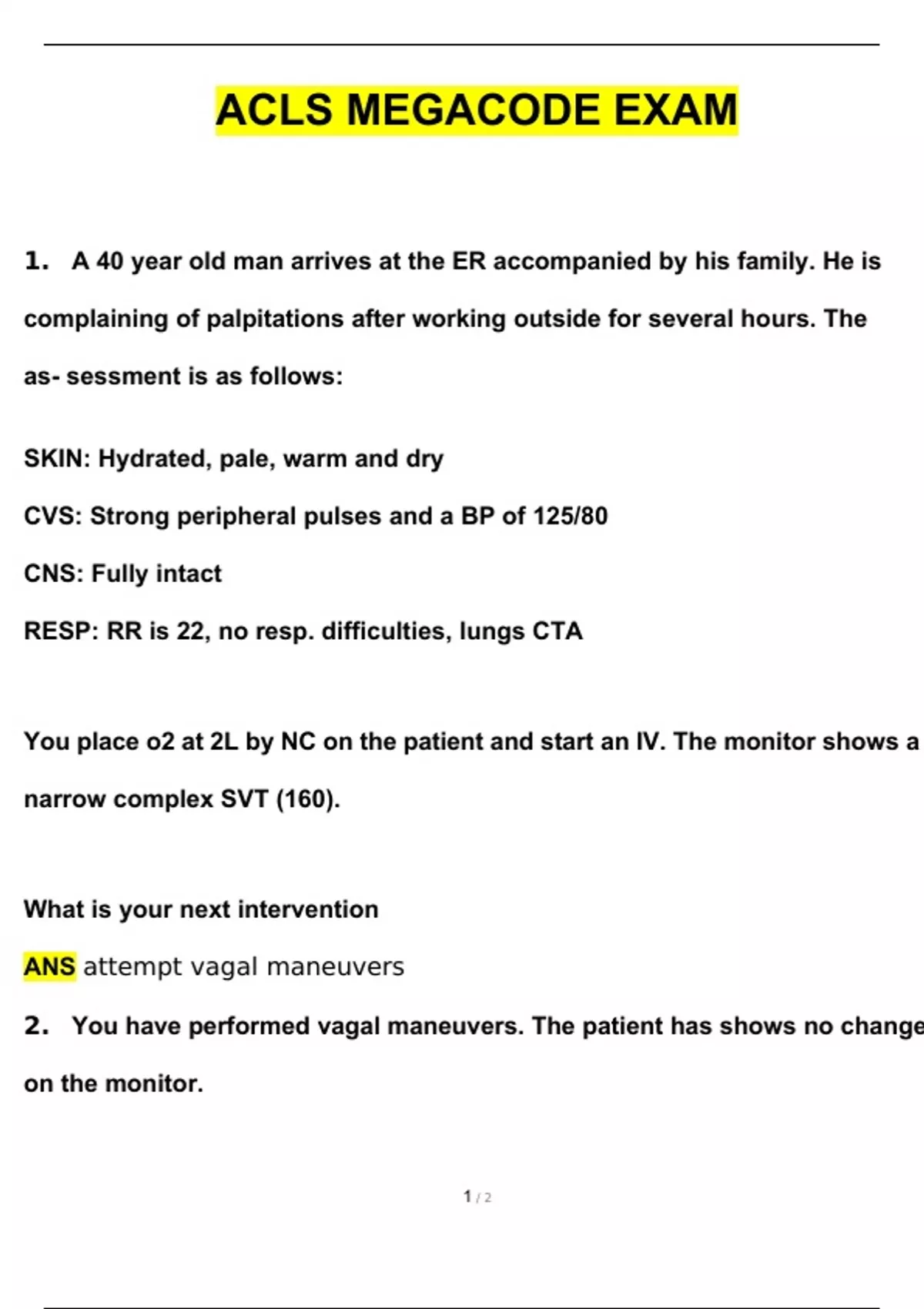 ACLS Megacode | Questions with 100% Correct Answers | Verified | Latest Update