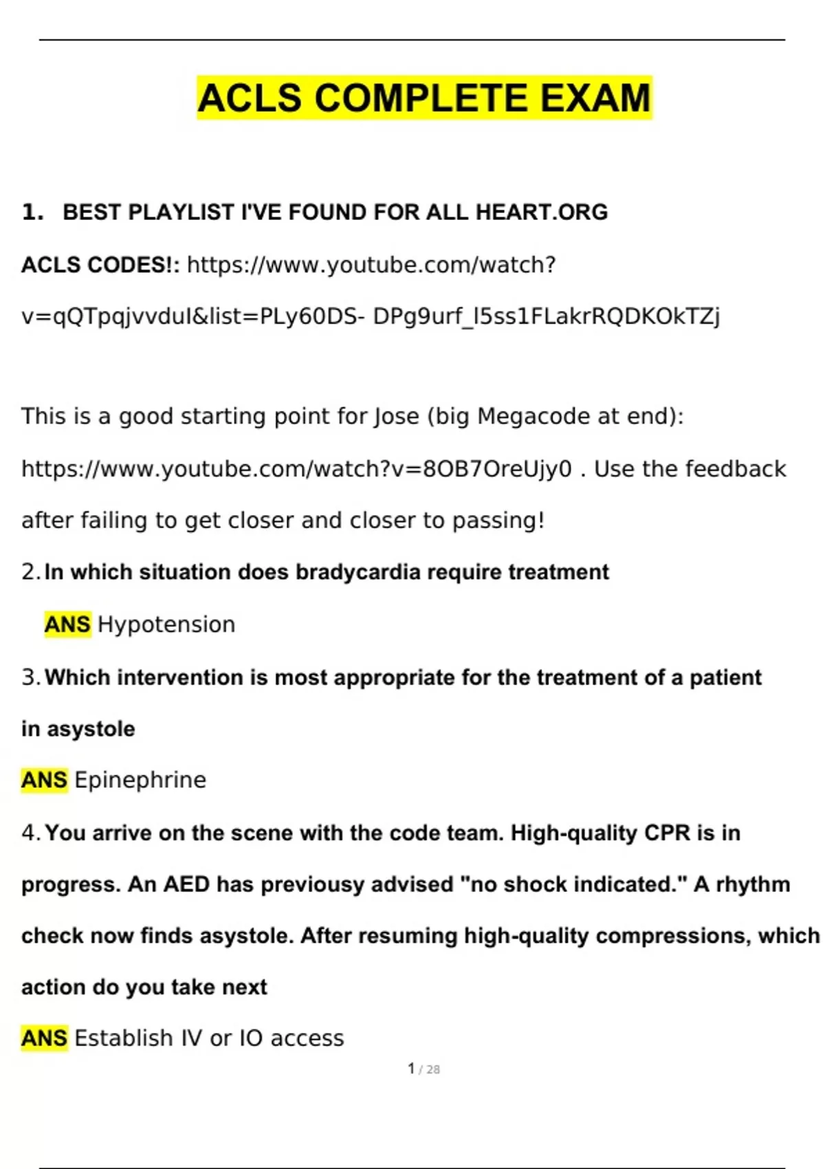 ACLS TEST COMPLETE | Questions with 100% Correct Answers | Verified | Latest Update