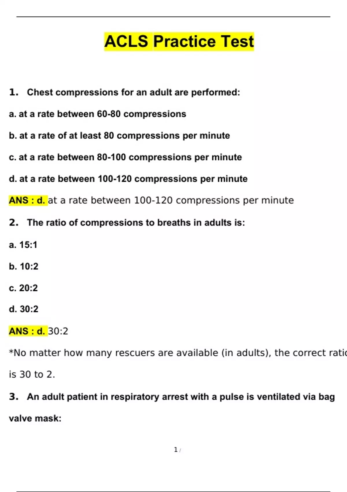 ACLS Practice Test | Questions with 100% Correct Answers | Verified | Latest Update