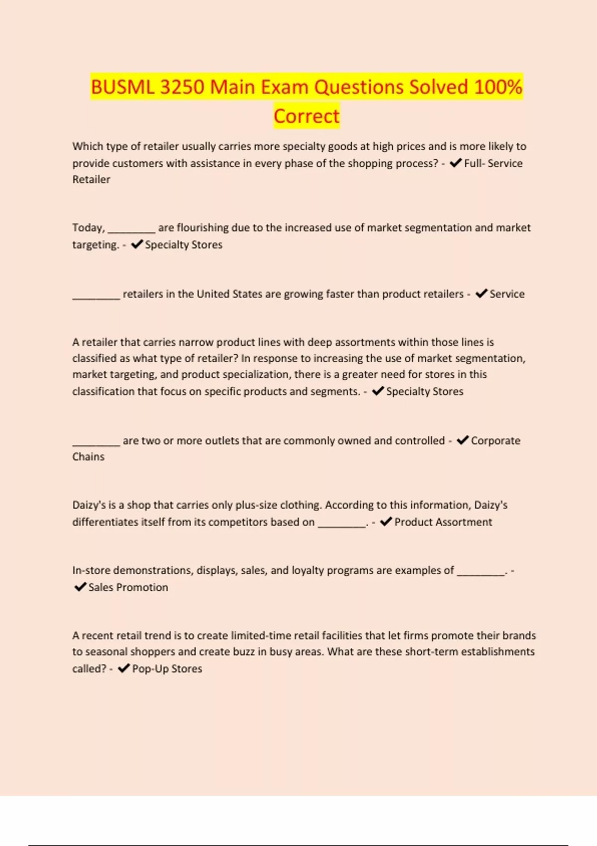 BUSML 3250 Main Exam Questions Solved 100% Correct