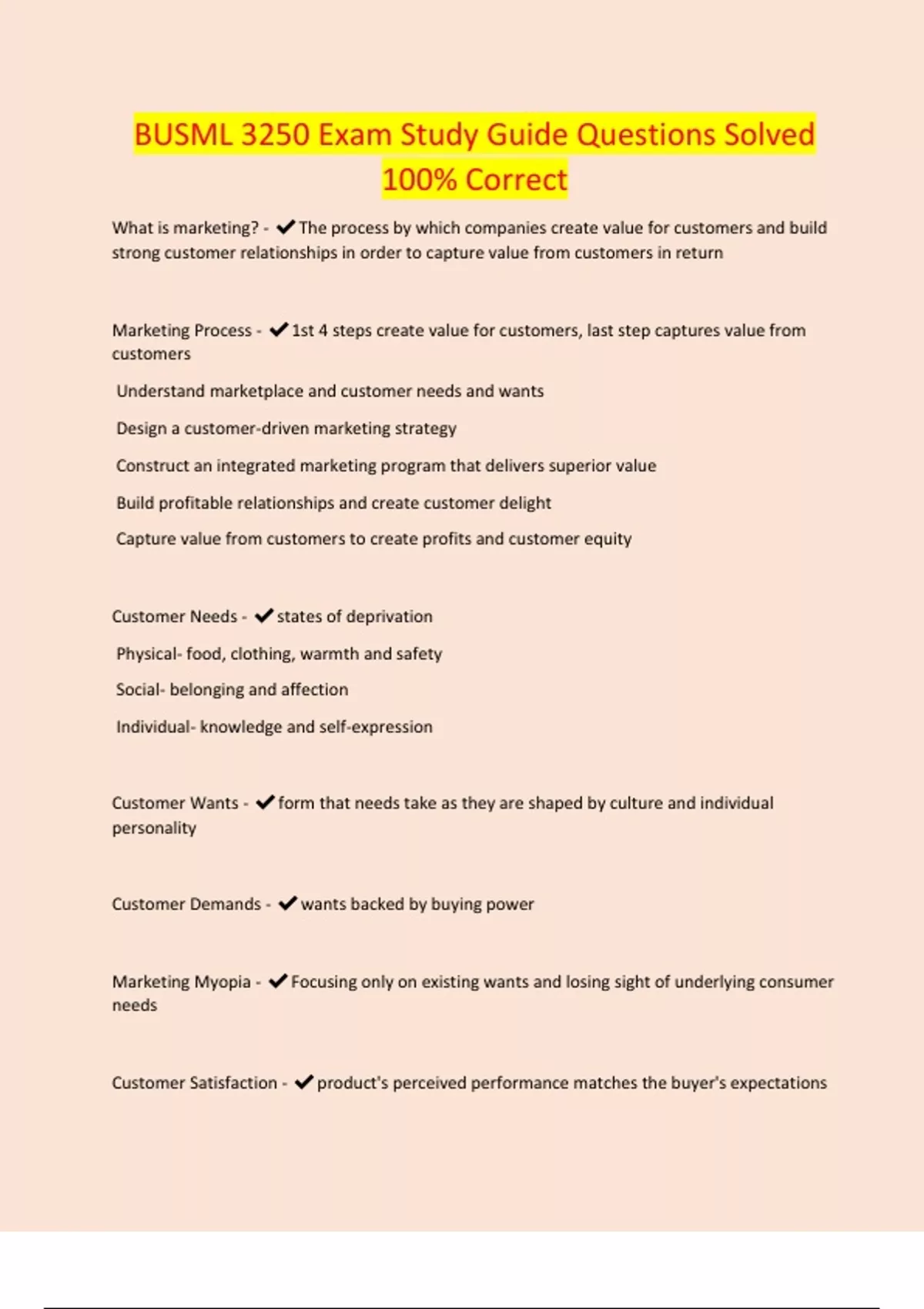 BUSML 3250 Exam Study Guide Questions Solved 100% Correct