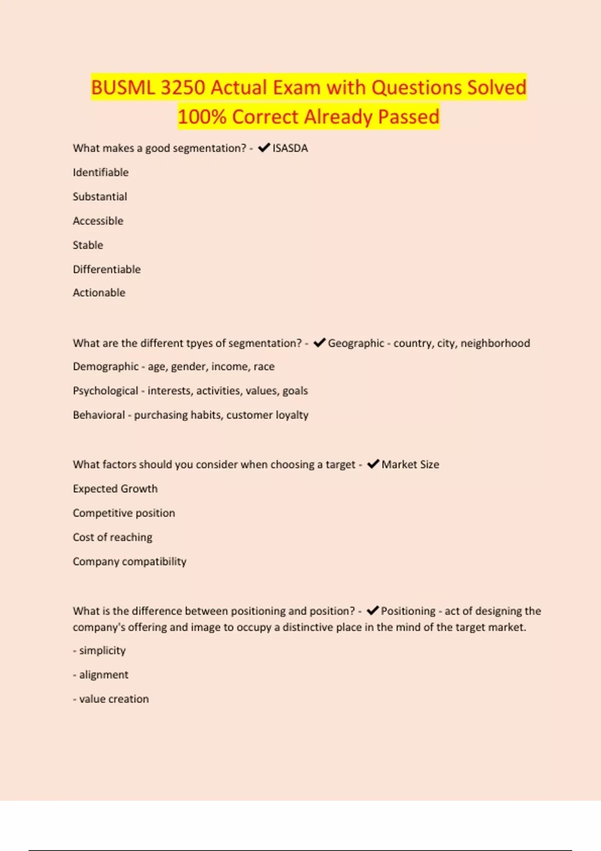 busml 3250 actual exam with questions solved 100