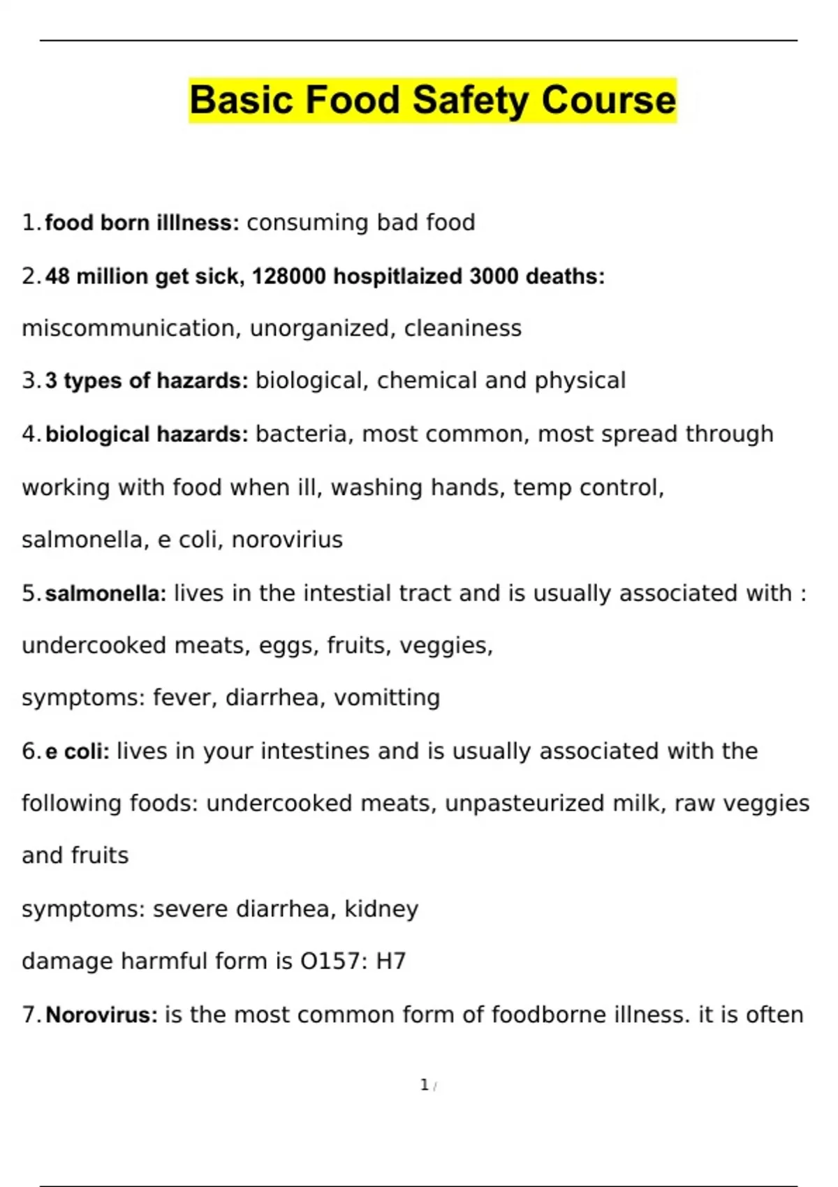 Basic Food Safety Course | Questions with 100% Correct Answers | Verified | Latest Update