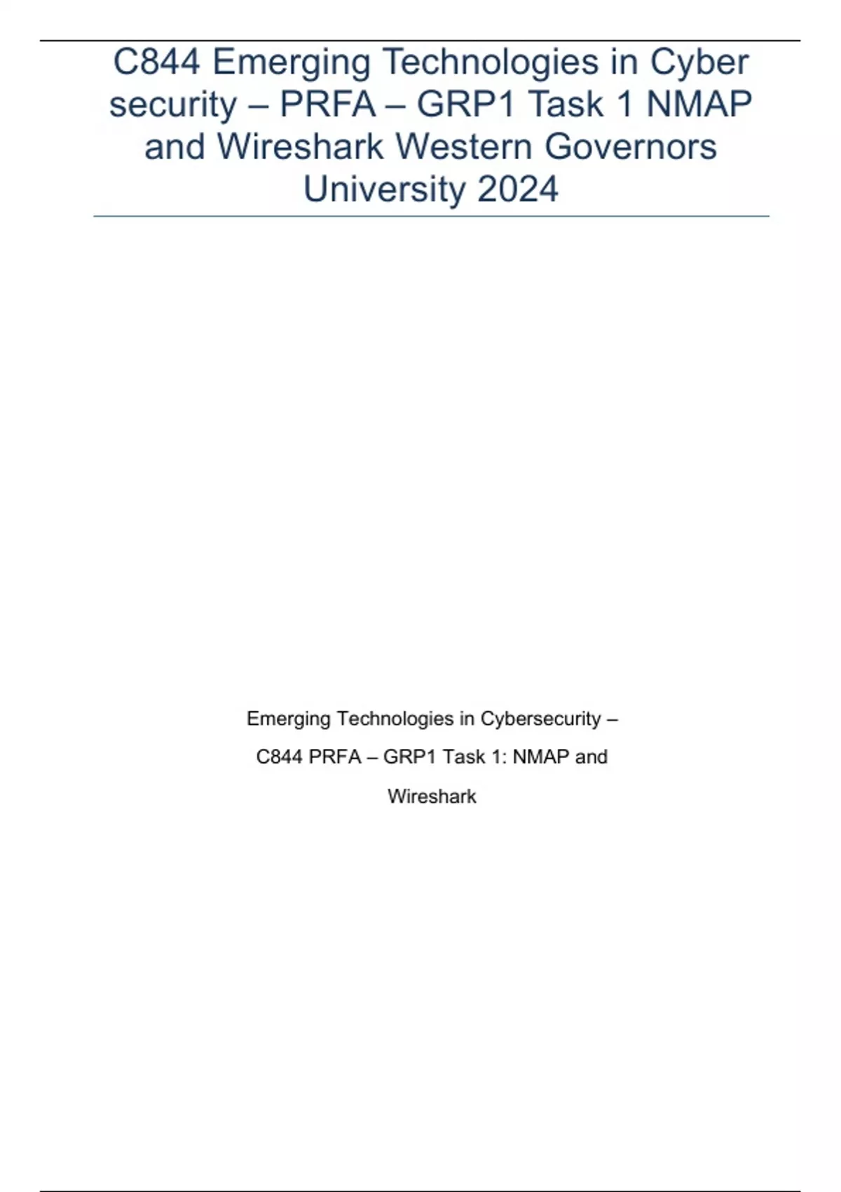 C844 Emerging Technologies in Cyber security – PRFA – GRP1 Task 1 NMAP and Wireshark Western