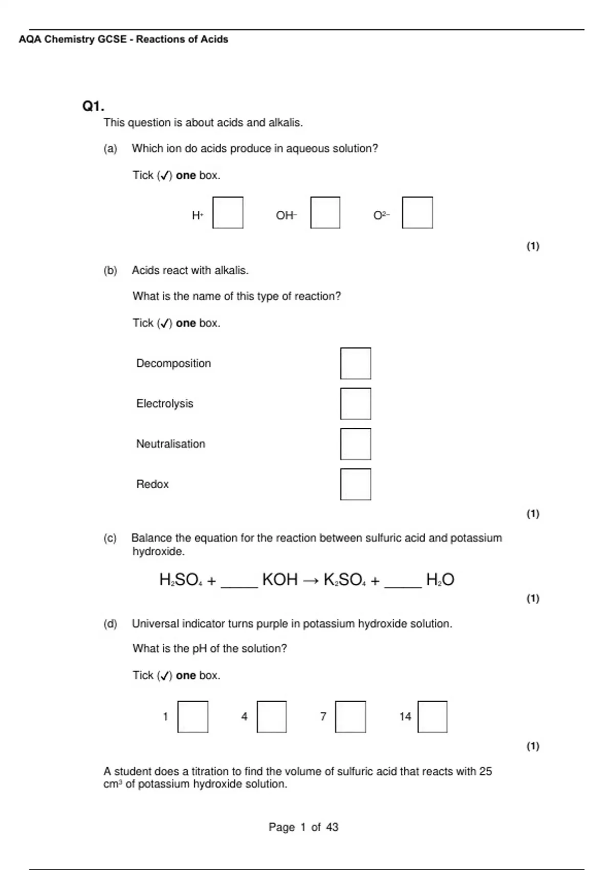 AQA GCSE Chemistry Reactions of Acids 4 Exam Questions and Complete Solutions