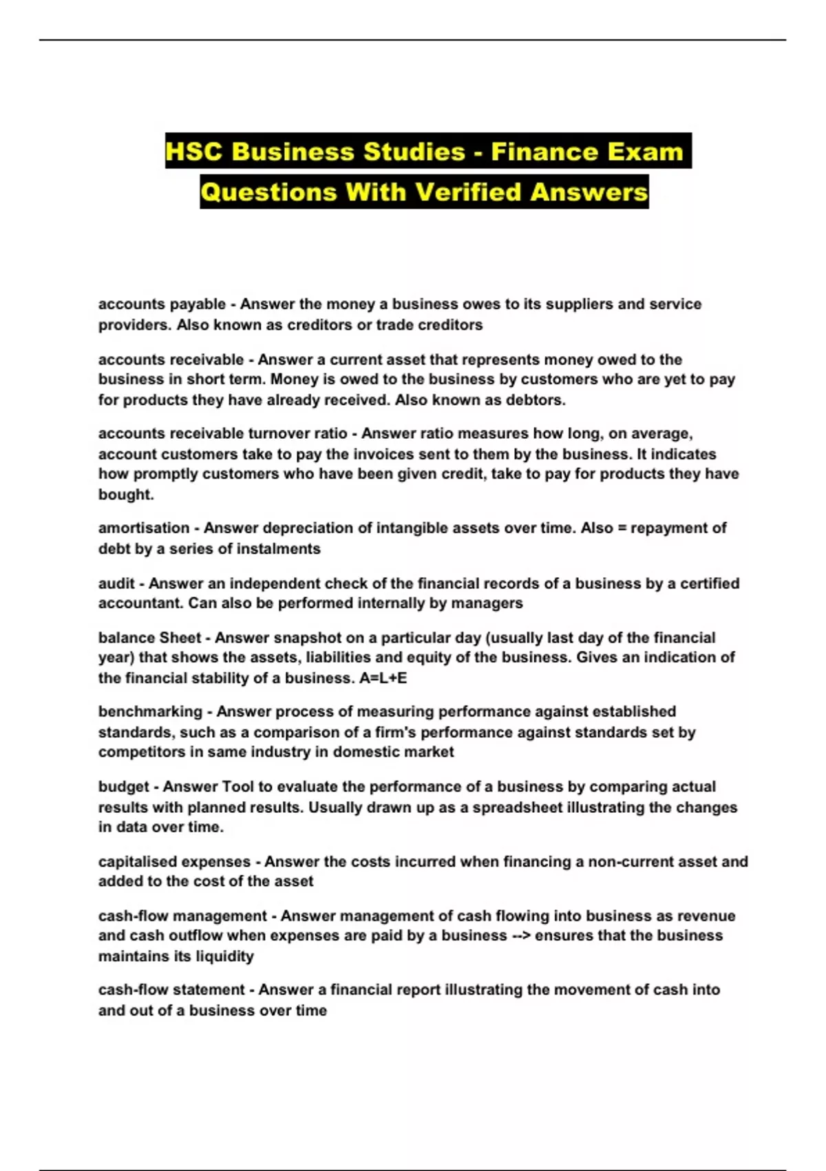 HSC Business Studies - Finance Exam Questions With Verified Answers