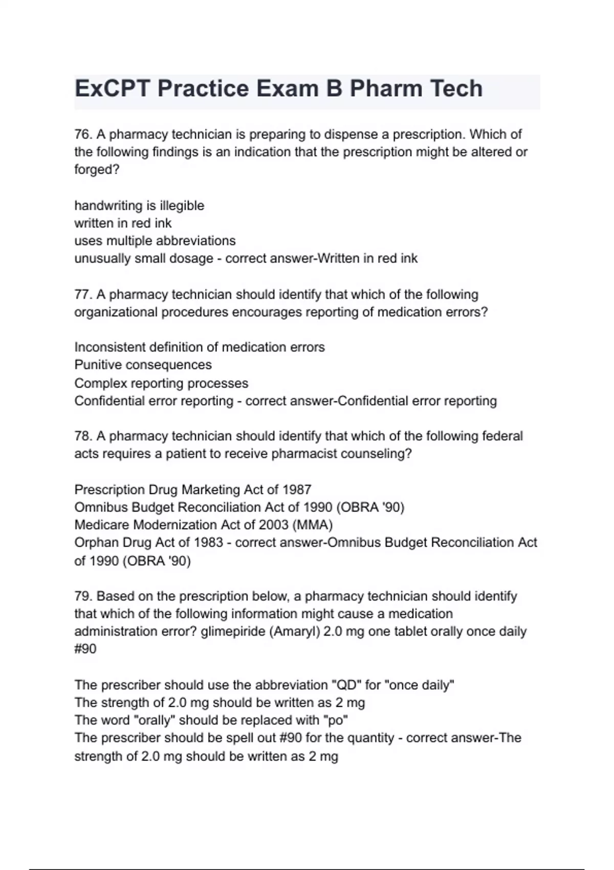 ExCPT Practice Exam B Pharm Tech with complete solution