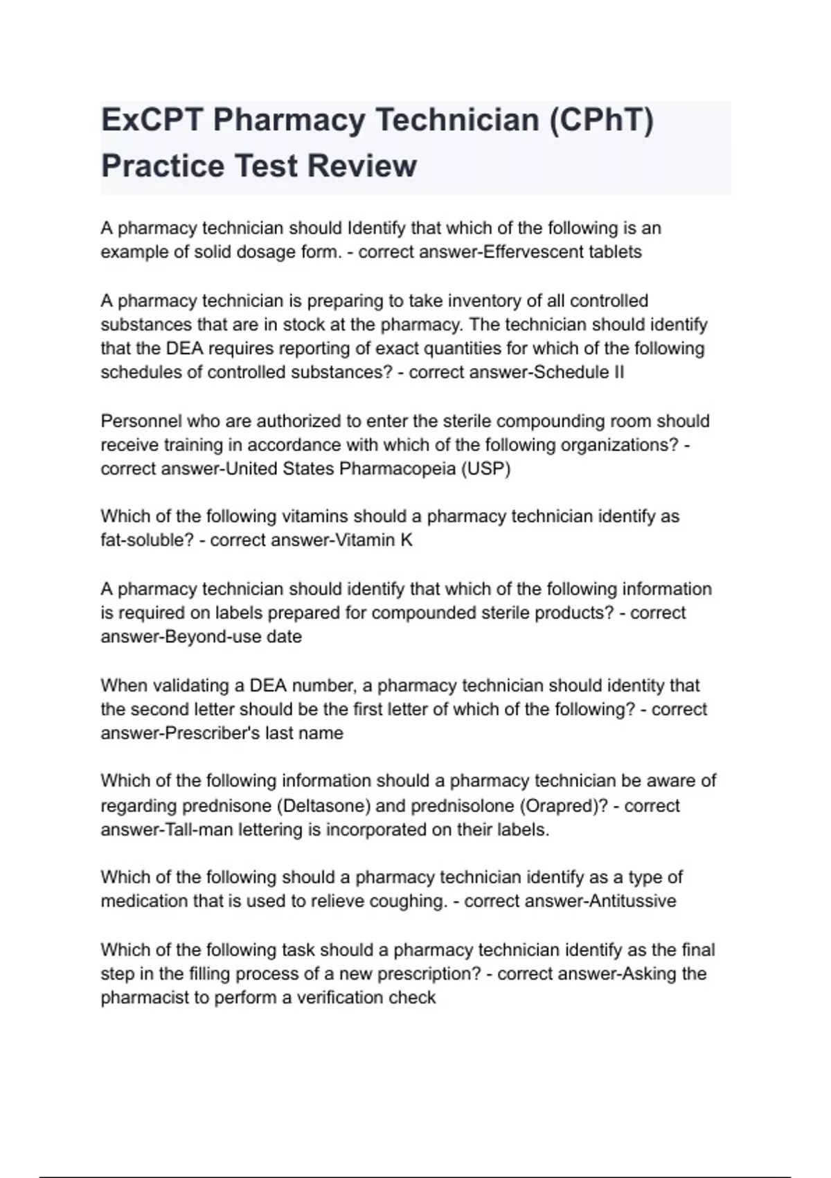 ExCPT Pharmacy Technician (CPhT) Practice Test Review