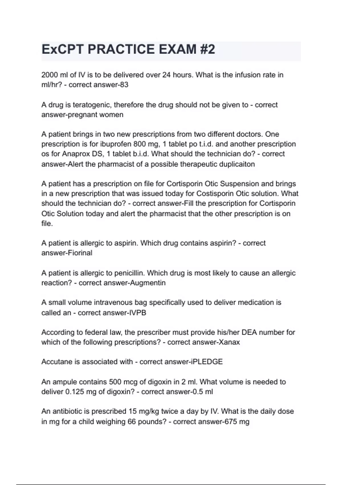 ExCPT PRACTICE EXAM #2 with complete solution