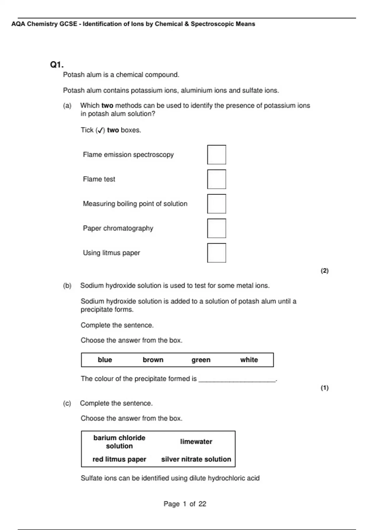 AQA Chemistry GCSE Identification of Ions by Chemical _ Spectroscopic Means 4 Exam Questions and Complete Solutions