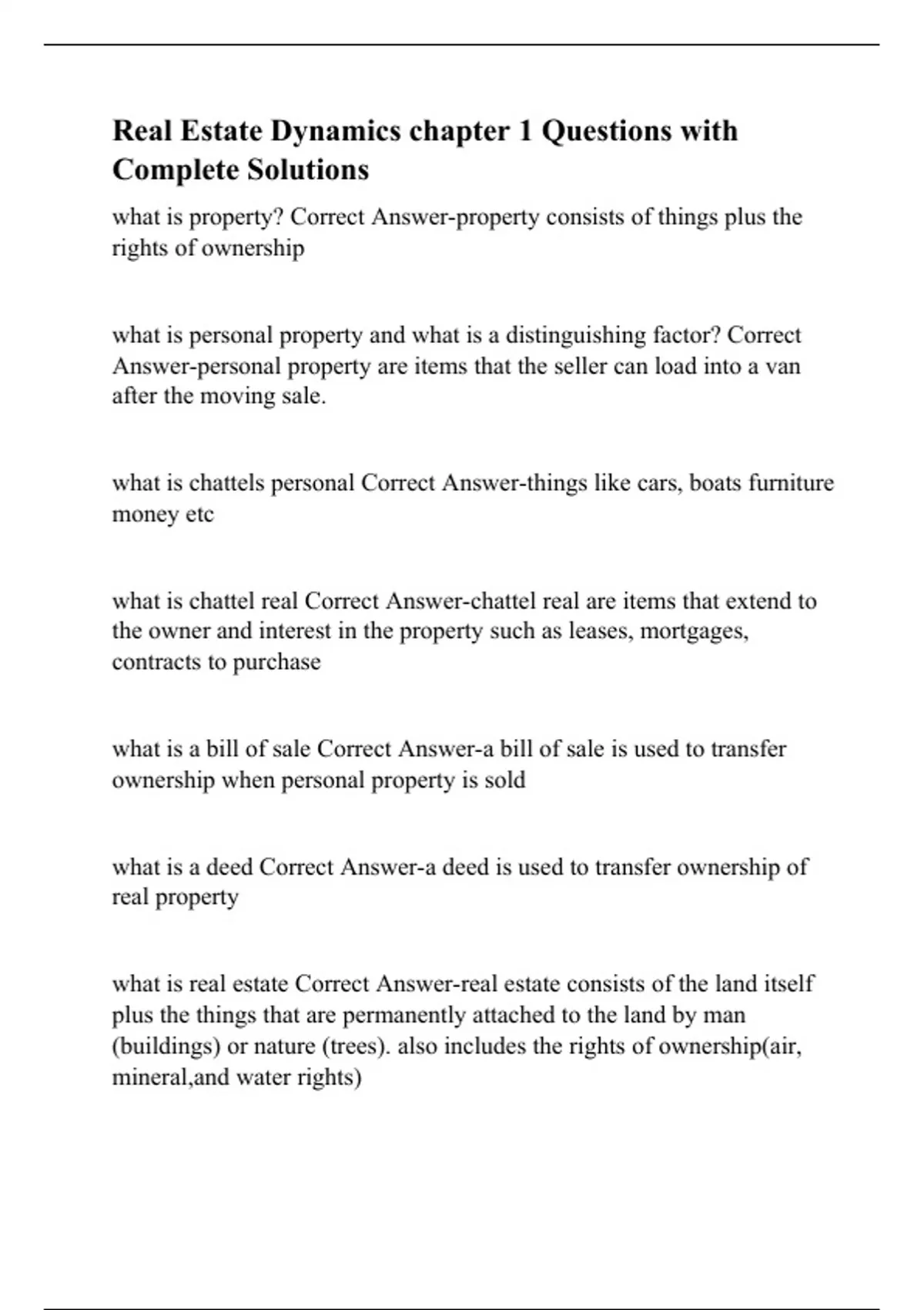 Real Estate Dynamics chapter 1 Questions with Complete Solutions