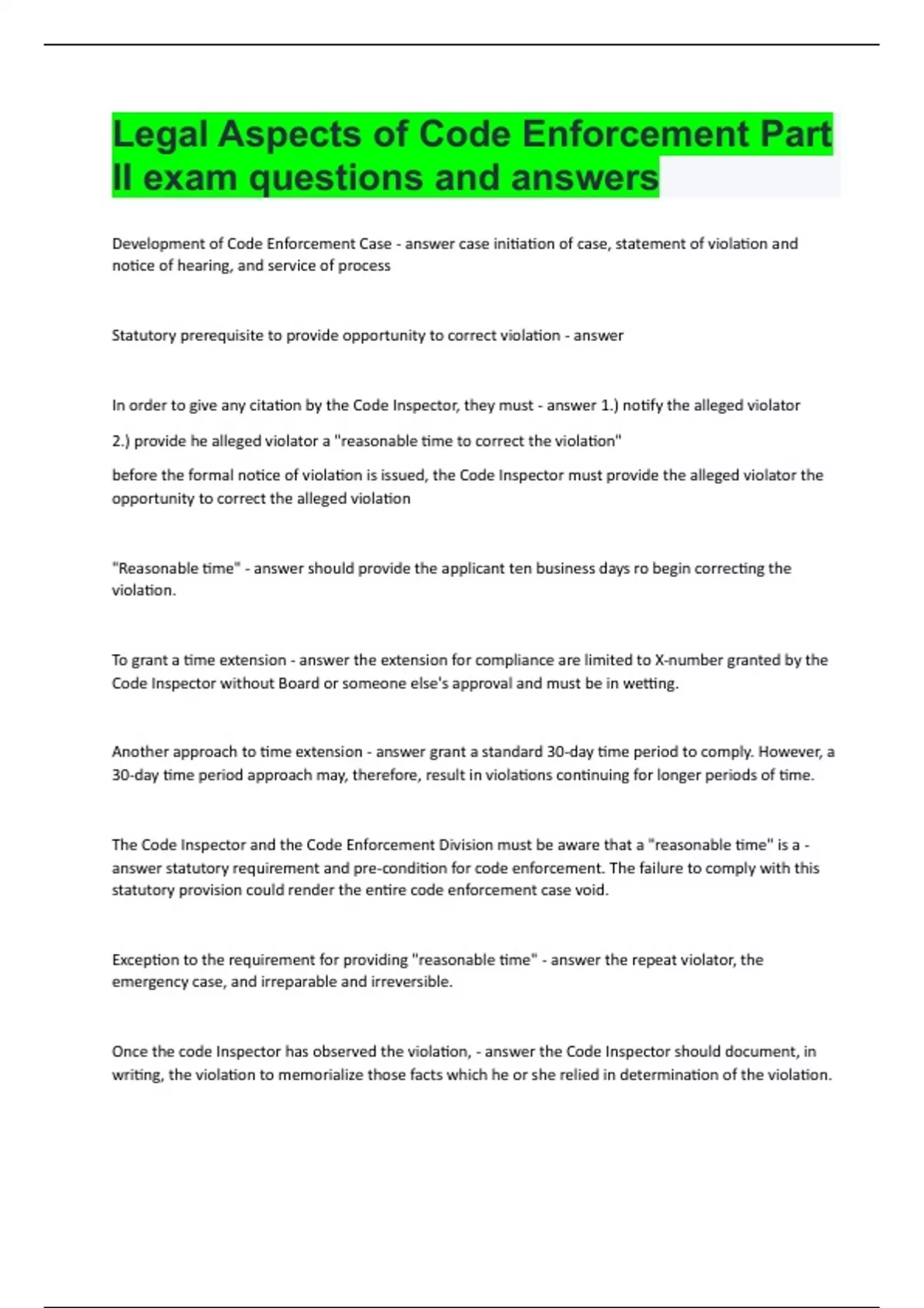legal aspects of code enforcement part ii exam