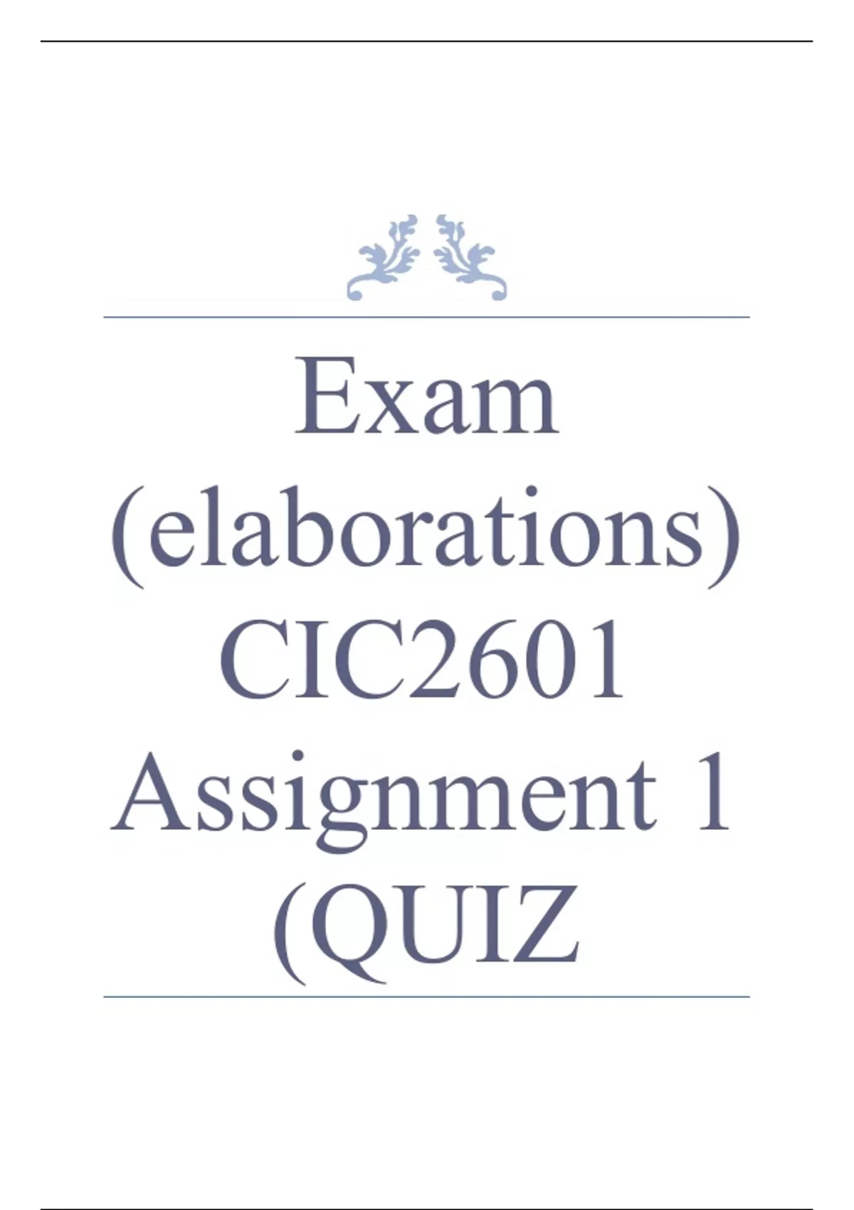 Exam (elaborations) CIC2601 Assignment 1 (QUIZ COMPLETE ANSWERS) 2024 (571307) - DUE 30 April 2024 • Course • Computer Integration in the classroom (CIC2601) • Institution • University Of South Africa (Unisa) • Book • Integrating Computer Technology Into