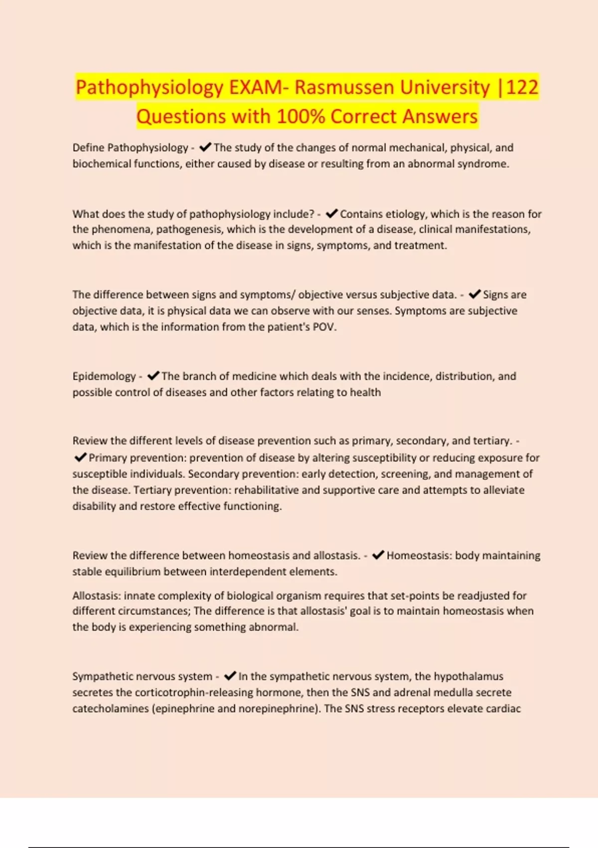 - pathophysiology exam