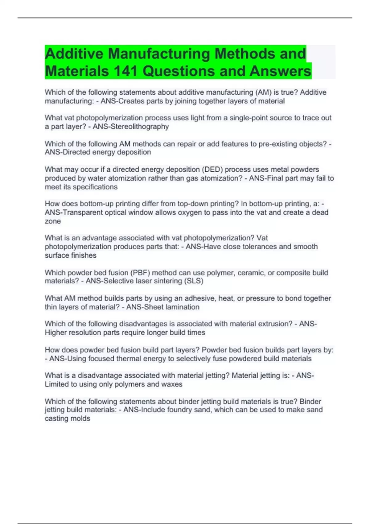 Additive Manufacturing Methods and Materials 141 Questions and Answers