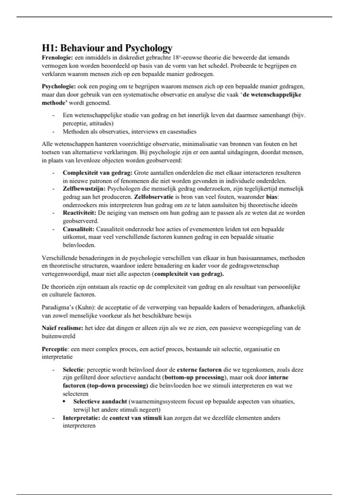 H1: Behaviour and Psychology