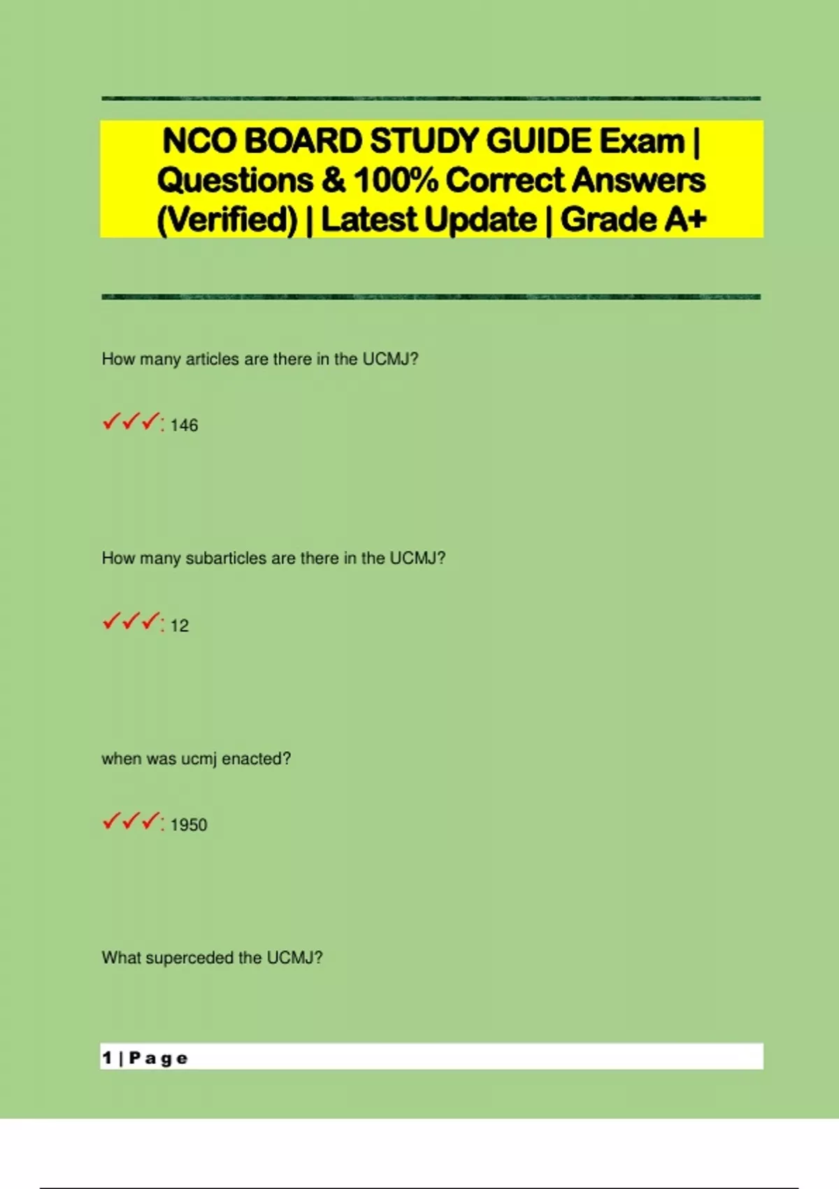 NCO BOARD STUDY GUIDE Exam | Questions & 100% Correct Answers (Verified) | Latest Update | Grade A+