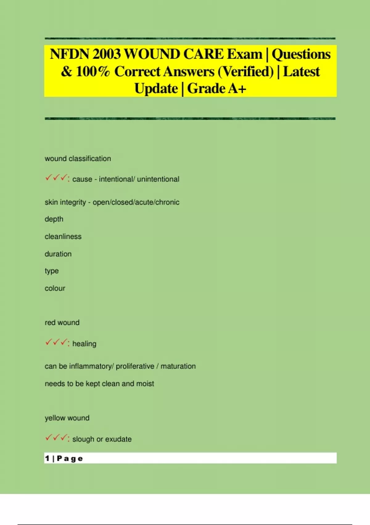 NFDN 2003 WOUND CARE Exam | Questions & 100% Correct Answers (Verified) | Latest Update | Grade A+