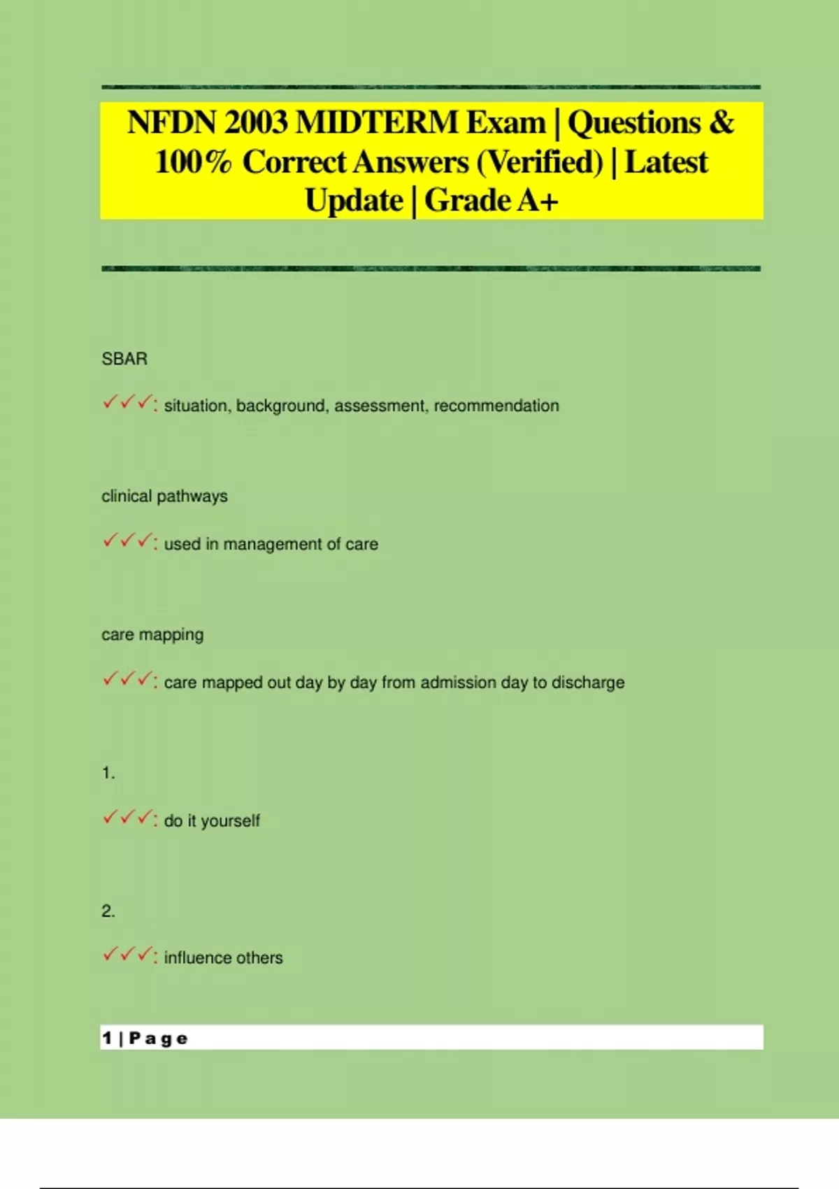 NFDN 2003 MIDTERM Exam | Questions & 100% Correct Answers (Verified) | Latest Update | Grade A+